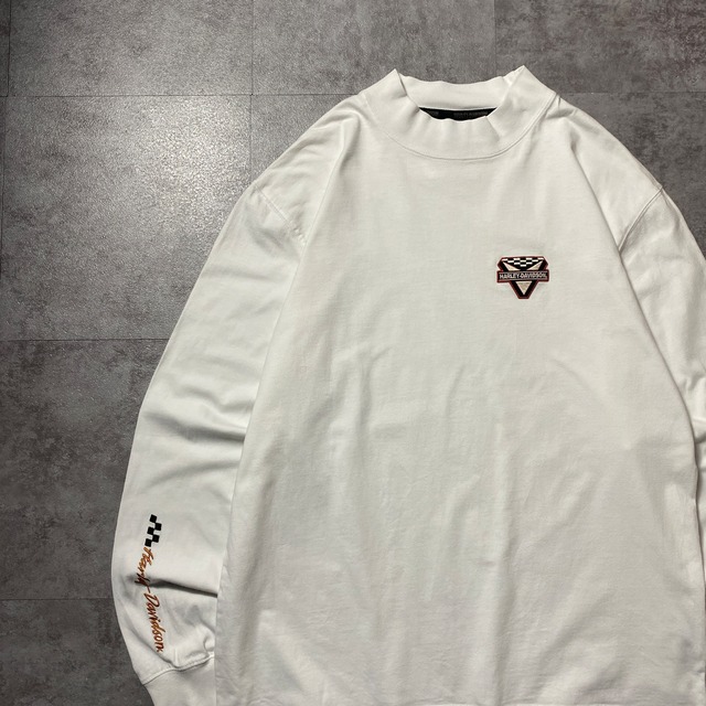 Harley-Davidson ハーレーダビッドソン ボトルネック ワンポイントワッペン アーム刺繍 ホワイト 白 Tシャツ ロンT