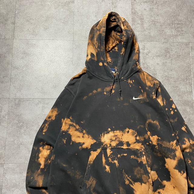 NIKE ナイキ スウォッシュ 刺繍ワンポイント ブリーチ加工 XXLサイズ スウェット パーカー フーディ
