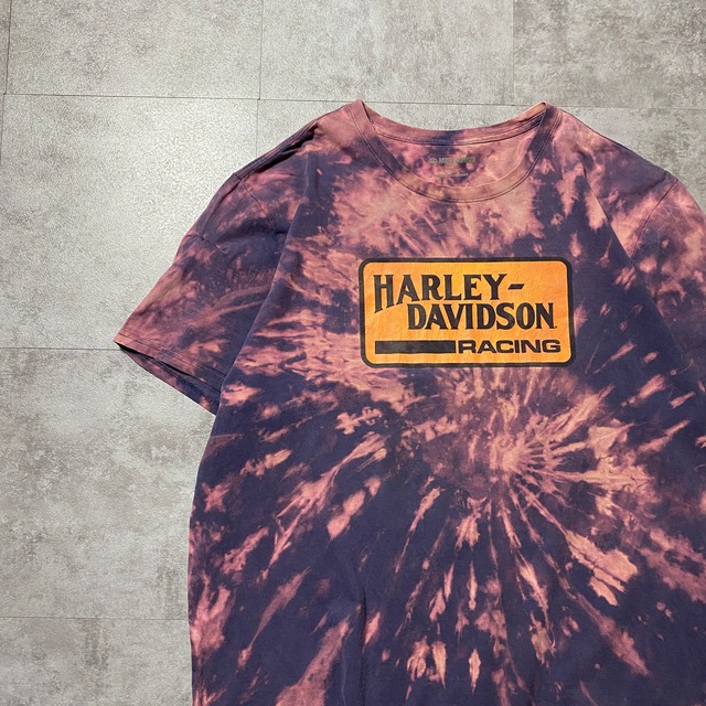 【Size:2XL】Harley-Davidson ハーレーダビッドソン ボックスプリント ブリーチ加工 Tシャツ