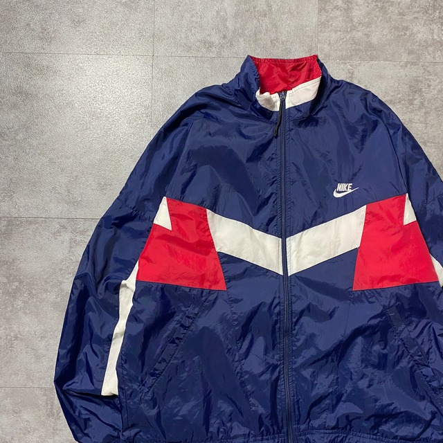 90's NIKE ナイキ スウォッシュ 刺繍ワンポイント アーム刺繍 クレイジーパターン ナイロンジャケット