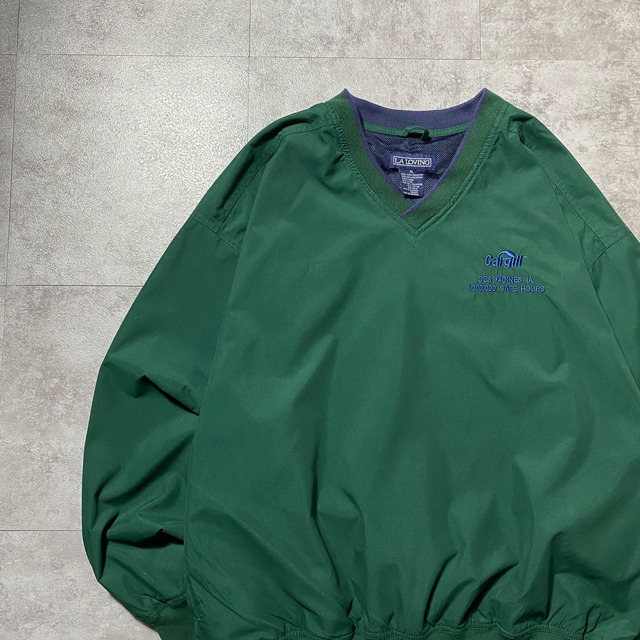 【Size:XL】90's LA LOVING 刺繍ワンポイント 企業ロゴ グリーン ナイロンプルオーバー