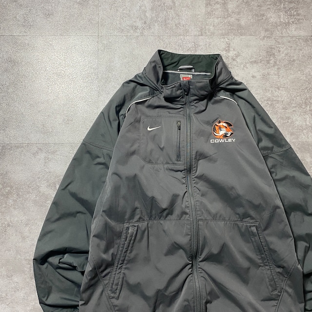 00's NIKE ナイキ スウォッシュ 刺繍ロゴ COWLEY タイガーワッペン Y2K フリースライナー グレー ナイロンジャケット