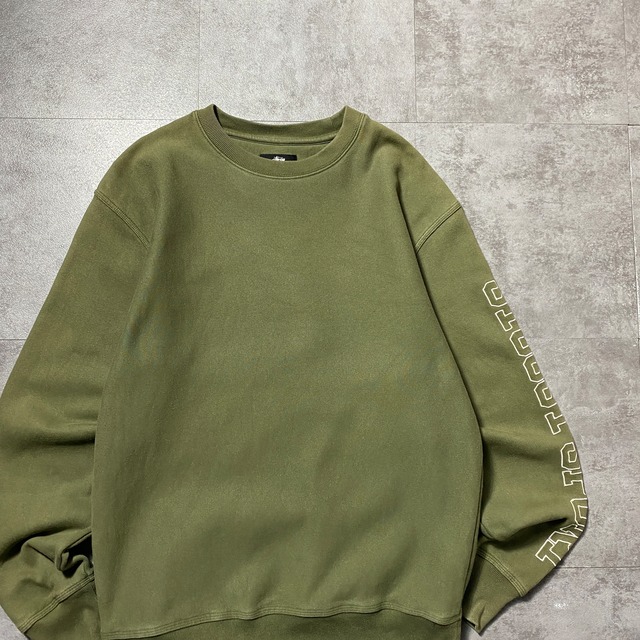 stussy ステューシー 刺繍アームロゴ カーキグリーン スウェット トレーナー