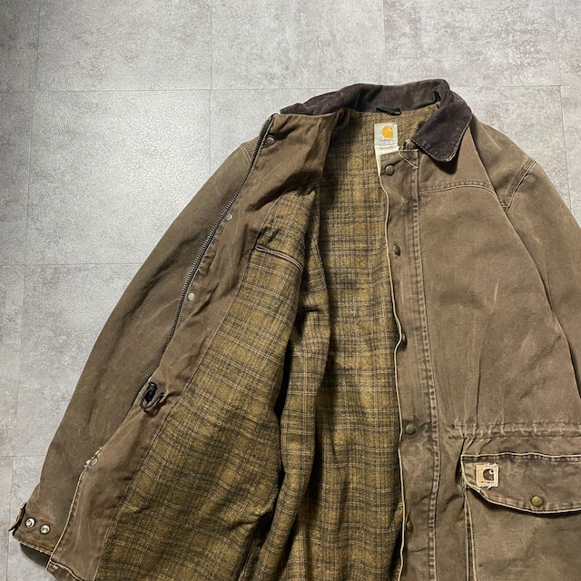 00's carhartt カーハート コーデュロイ襟 ブランケット付き ブラウン ダックジャケット トラディショナルジャケット カバーオール チョアコート