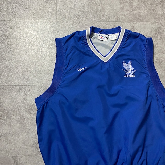 90's Reebok Air Force リーボック エアフォース 刺繍ロゴ ラインリブ ブルー ナイロンベスト ナイロンプルオーバー