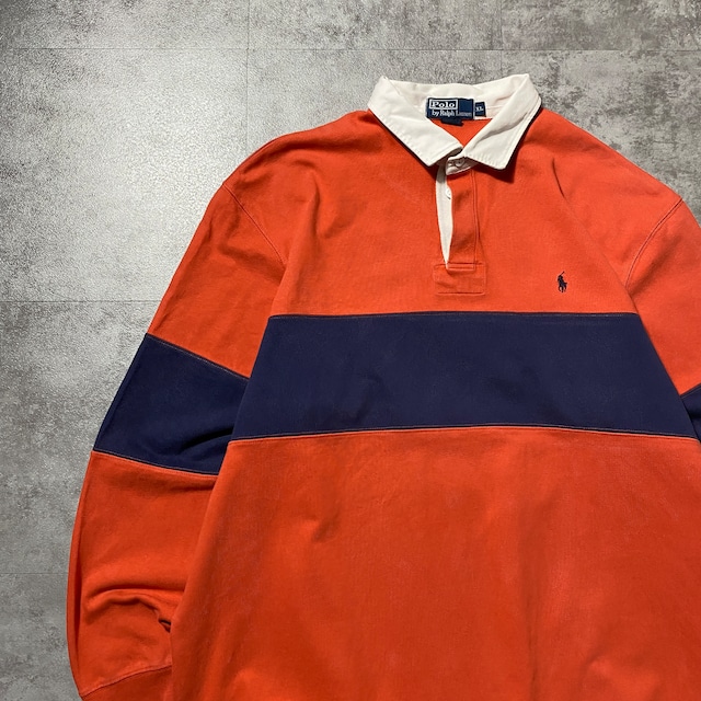 【Size.XL】Polo by Ralph Lauren ポロバイラルフローレン 刺繍ロゴ ポニー バイカラー オレンジ ポロシャツ ラガーシャツ