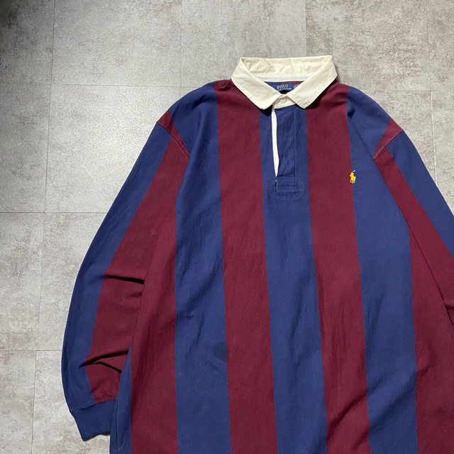 【Size:4XL】Polo Ralph Lauren ポロラルフローレン 刺繍ワンポイント ポニー ストライプ ラガーシャツ ポロシャツ ロンT