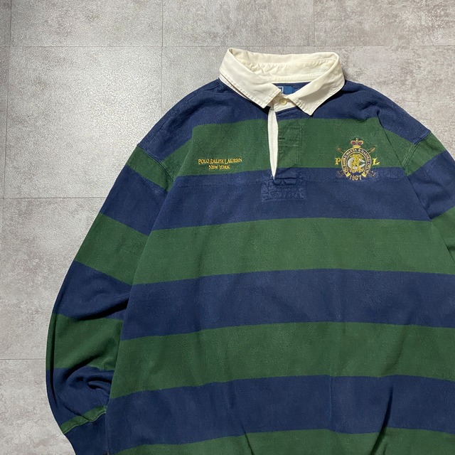 【Size.XL】Polo by Ralph Lauren ポロラルフローレン 刺繍ロゴ ポニー ボーダー ラガーシャツ ポロシャツ