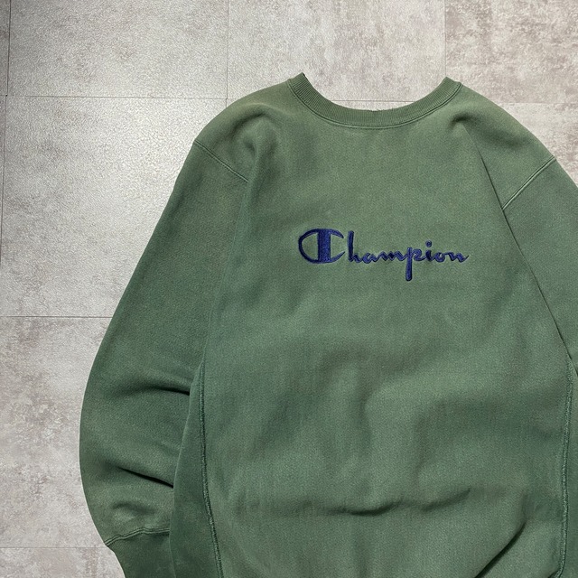 90's Champion チャンピオン リバースウィーブ 刺繍タグ 刺繍ロゴ フェードグリーン スウェット トレーナー