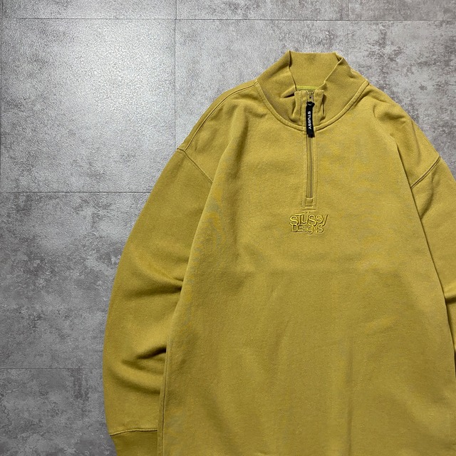 90's old stussy ステューシー 刺繍ワンポイント ハーフジップ カーキグリーン スウェット トレーナー