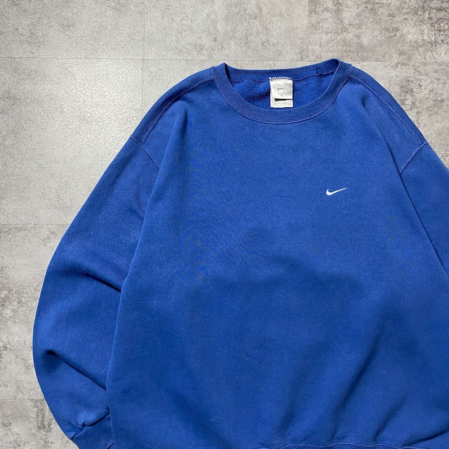 【Size.XL】00's NIKE ナイキ スウォッシュ 刺繍ワンポイント ブルー スウェット トレーナー