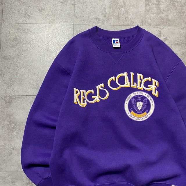 【USA製】90's RUSSEL ATHLETIC REGIS COLLEGE ラッセルアスレチック レジス大学 カレッジロゴ プリント XLサイズ パープル 紫 スウェット トレーナー