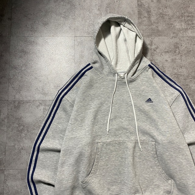00's adidas アディダス 刺繍ワンポイント パフォーマンスロゴ サイドストライプ グレー スウェット パーカー