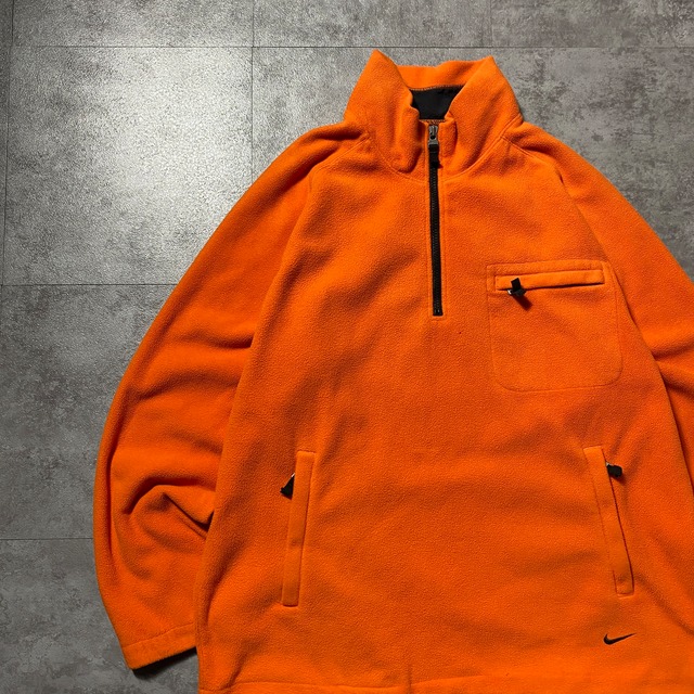 00's NIKE ナイキ ハーフジップ スウォッシュ 刺繍ロゴ オレンジ フリーススウェット