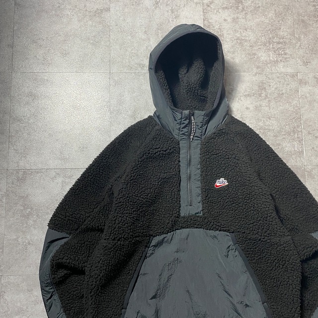 【Size.XL】NIKE ナイキ スウォッシュ 刺繍ロゴ ハーフジップ ブラック 黒 ボアフリース アノラックパーカー