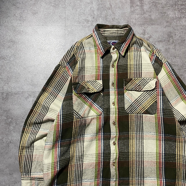 80's 90's C.E. SCHMIDT WORKWEAR シーイー・シュミット リアルワーク チェック総柄 ダブルポケット オンブレ ヘビーフランネルシャツ