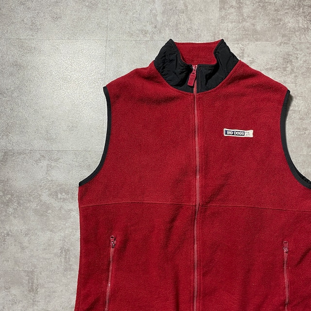 【USA製】90's BIG DOGS 希少POLAR DOGSタグ ビッグドッグス ワンポイント ラベルロゴ XLサイズ レッド 赤 フリースベスト