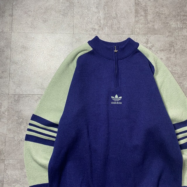 90's adidas アディダス トレフォイル センター刺繍 ハーフジップ アクリルニット セーター