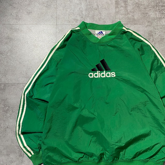 90's adidas アディダス 刺繍パフォーマンスロゴ グリーン ナイロンプルオーバー