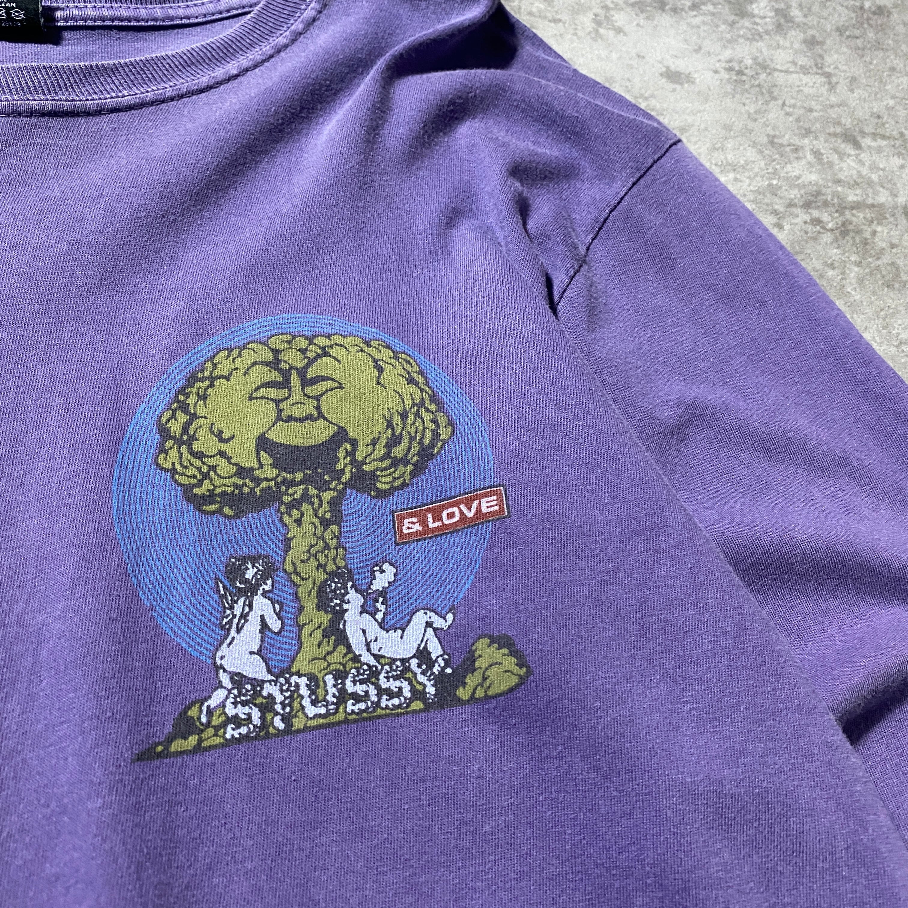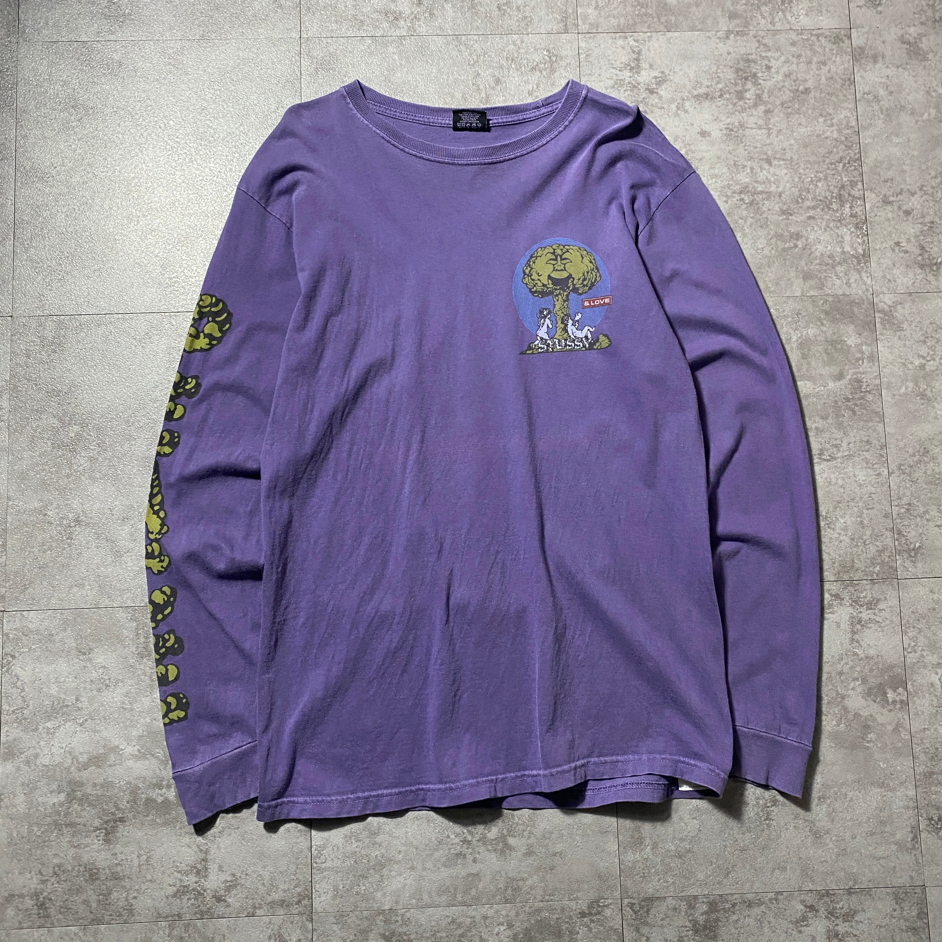 stussy ステューシー love&peace アームプリント パープル Tシャツ ロンT