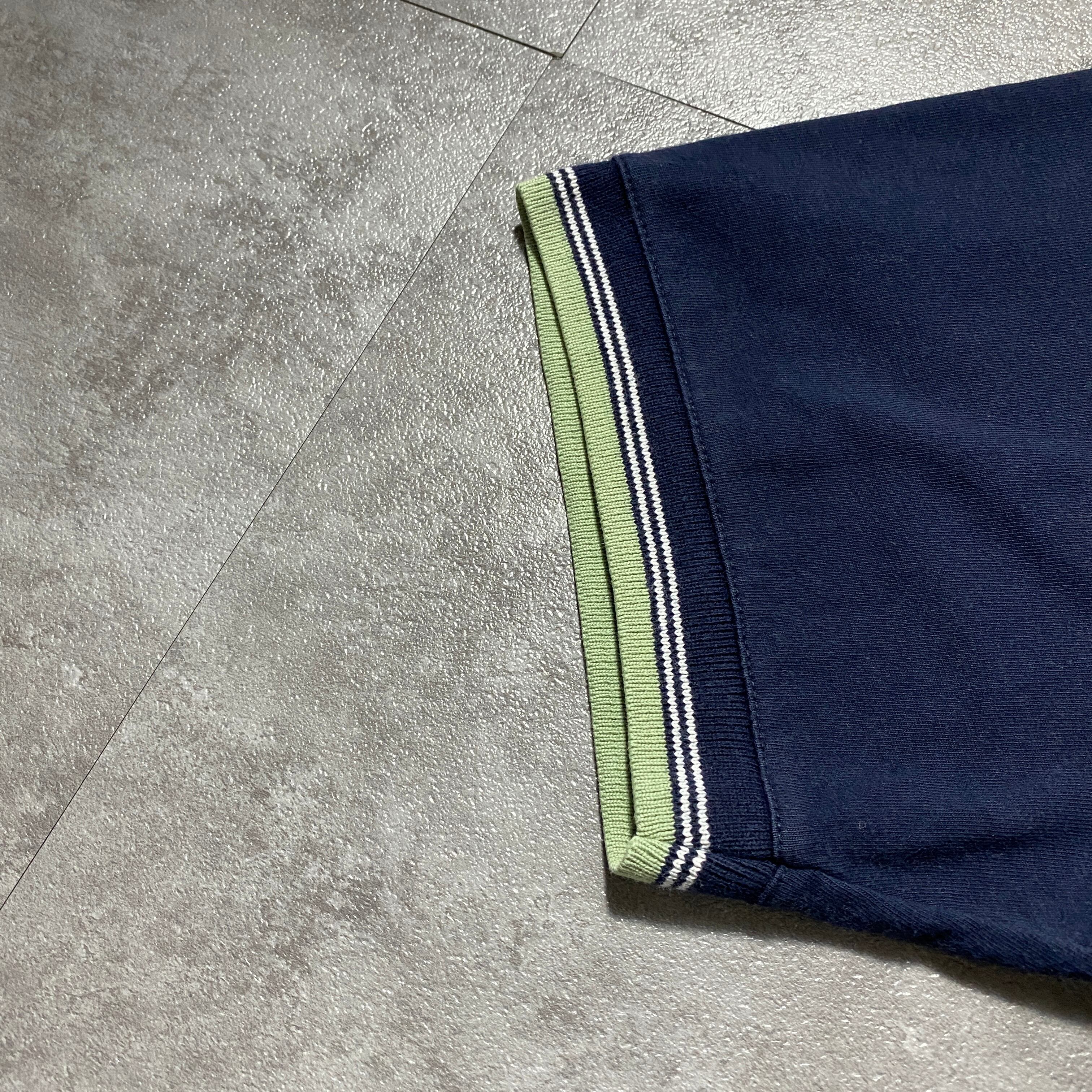 【Size.XL】90’s NIKE ナイキ スウォッシュ 刺繍ワンポイント ラインリブ ネイビー Tシャツ