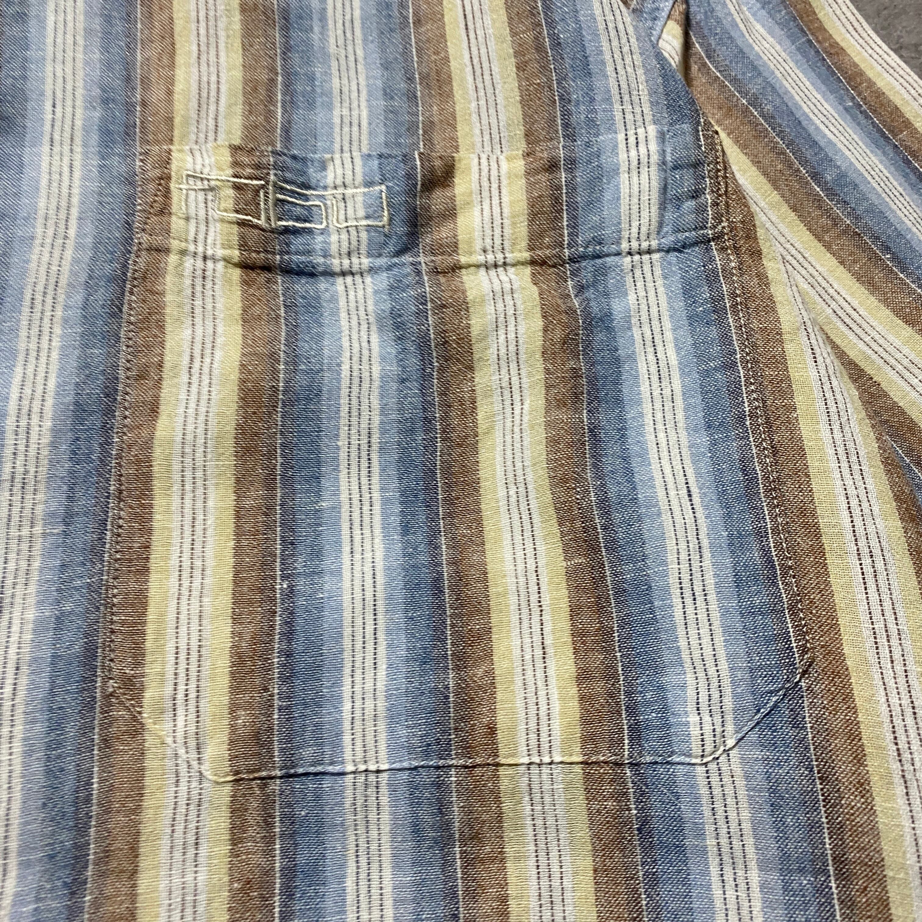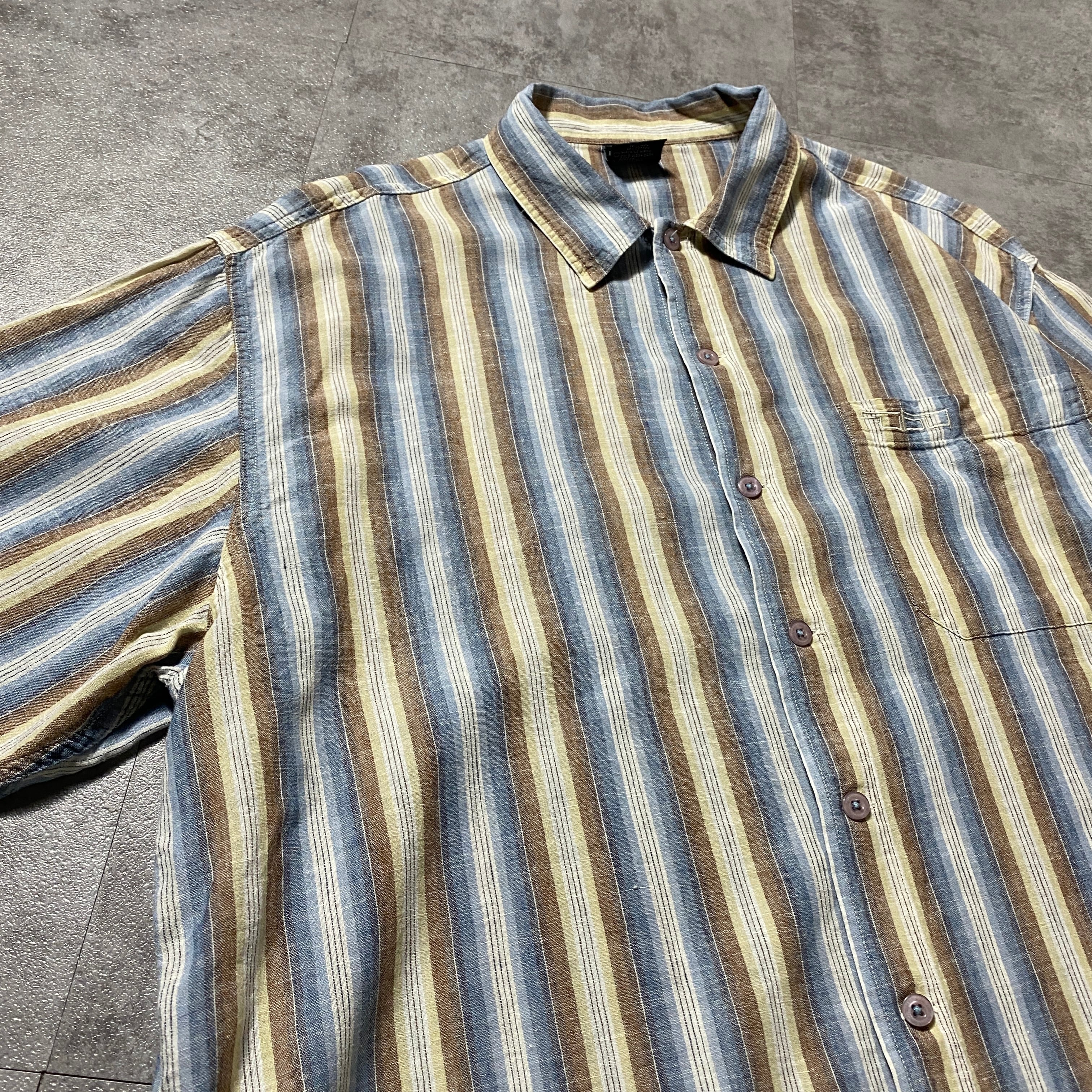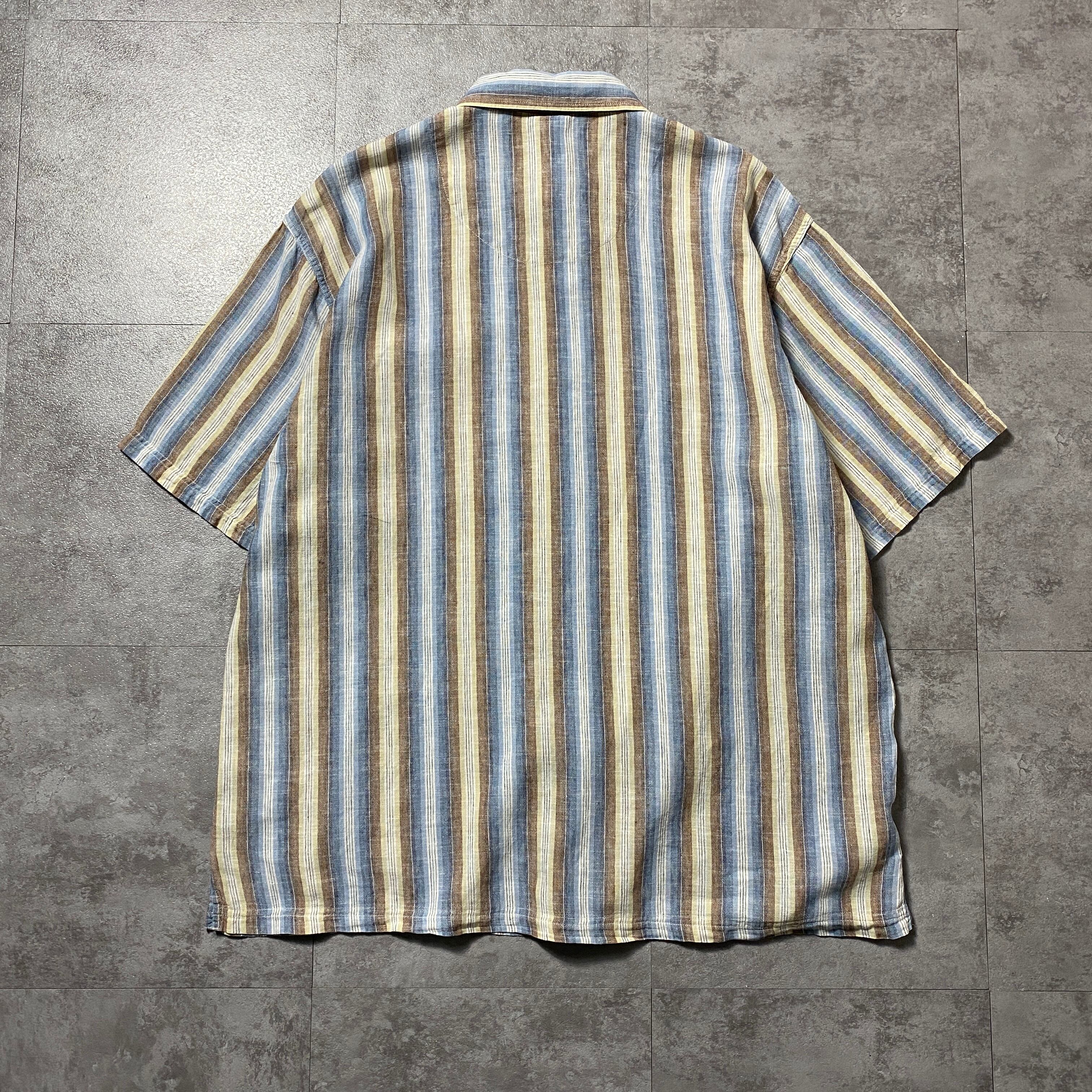 【Size.XL】FUBU フブ ストライプ リネン生地 半袖シャツ