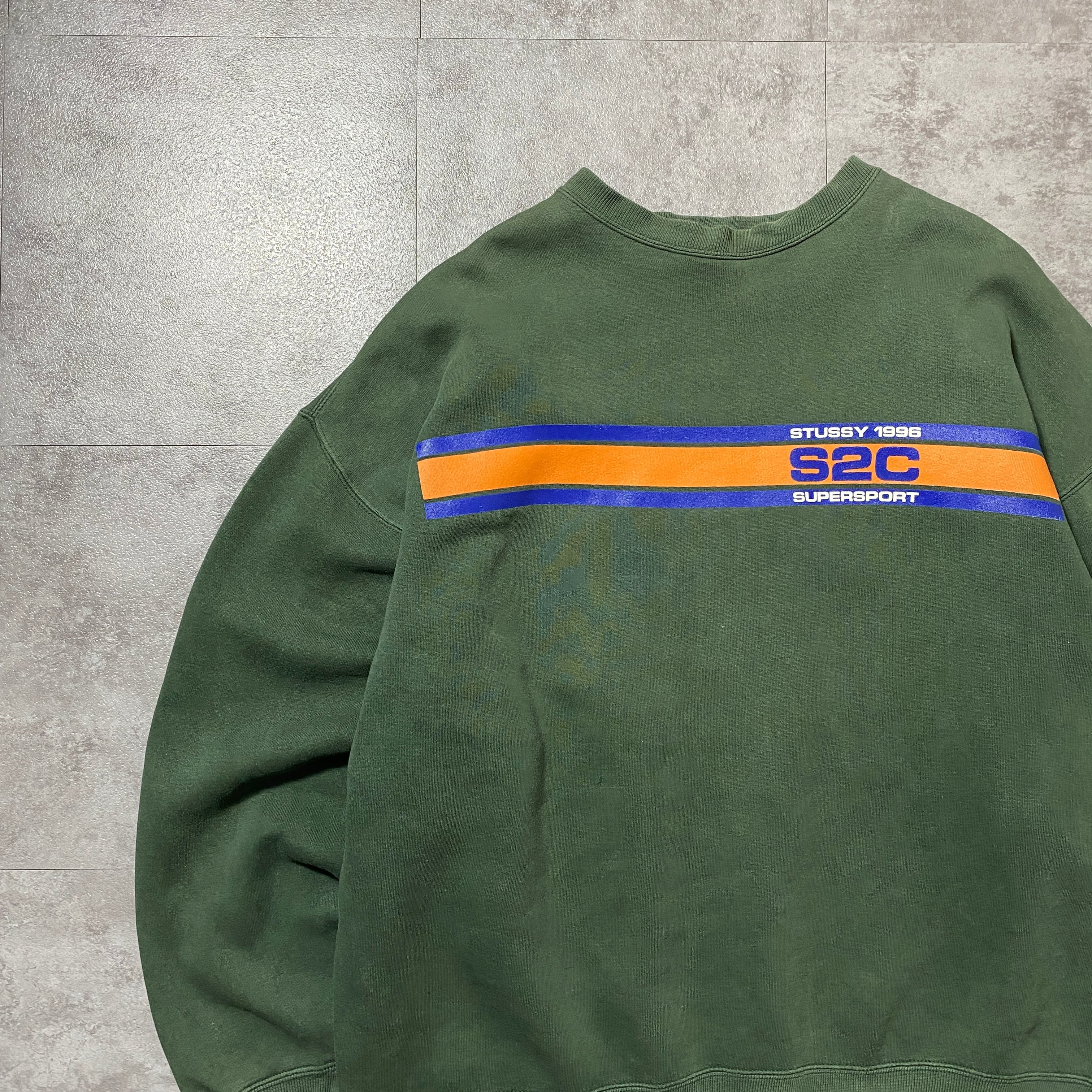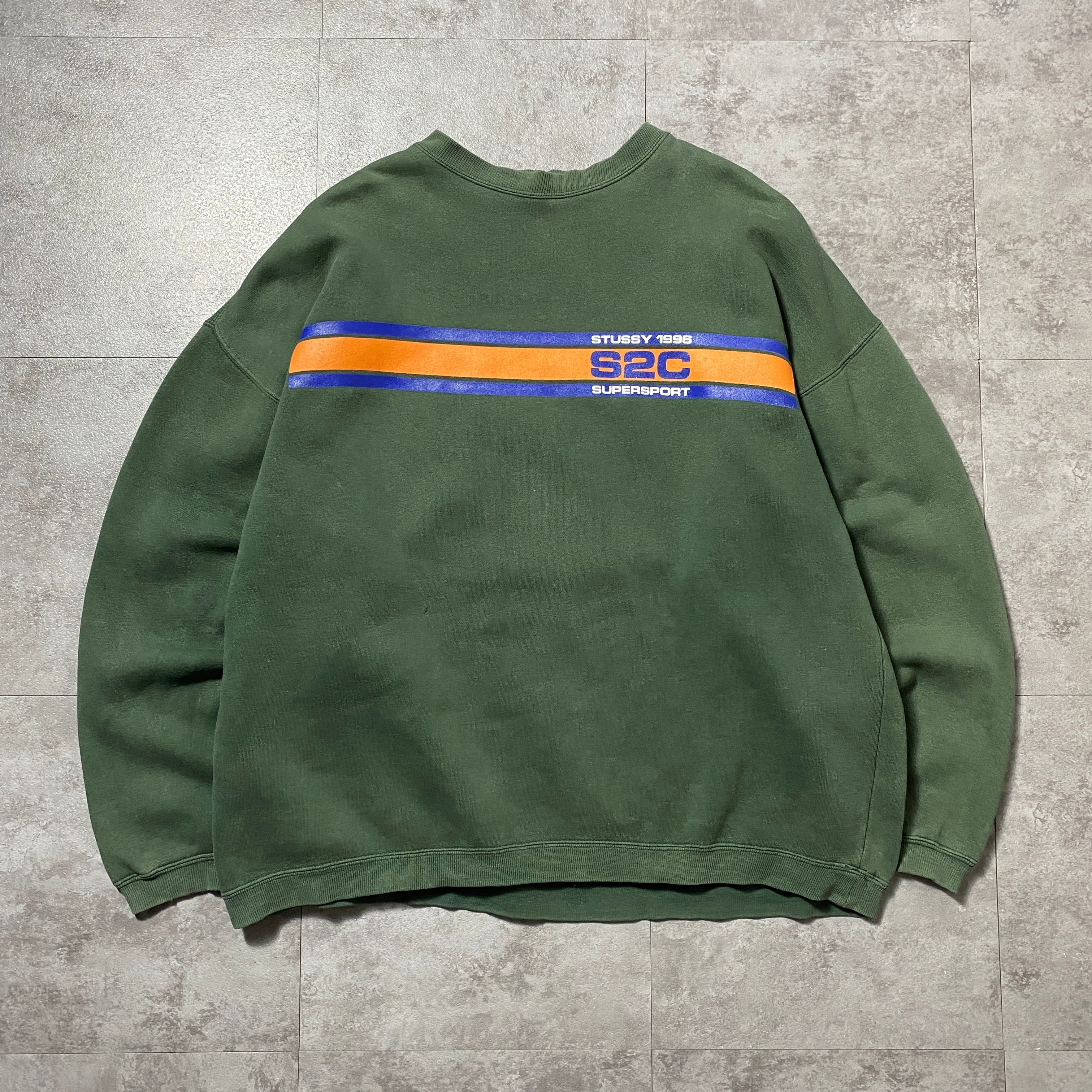 90's old stussy ステューシー ラインプリント グリーン ボックスシルエット スウェット トレーナー