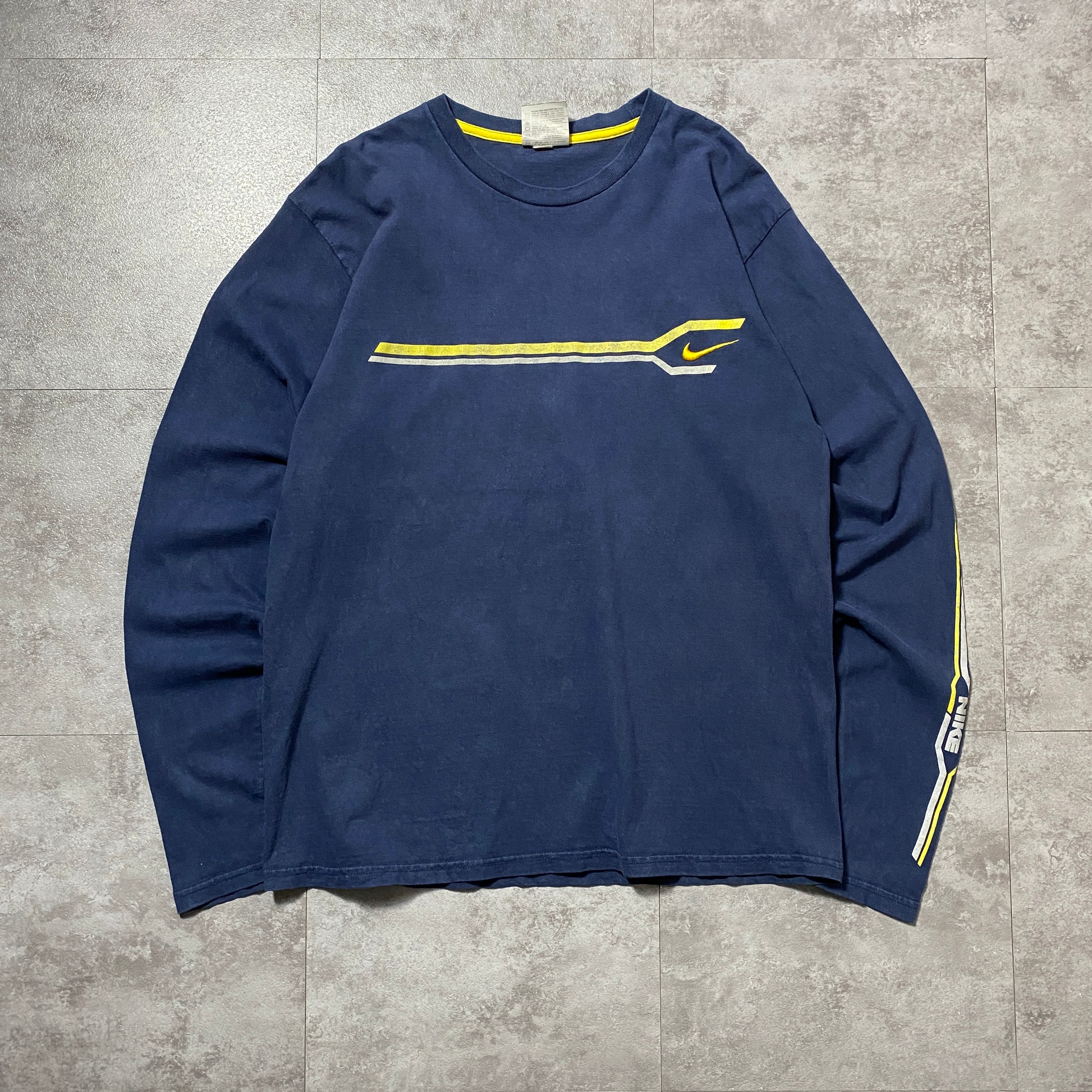 00's NIKE ナイキ スウォッシュ 刺繍ロゴ アームプリント ネイビー Tシャツ ロンT