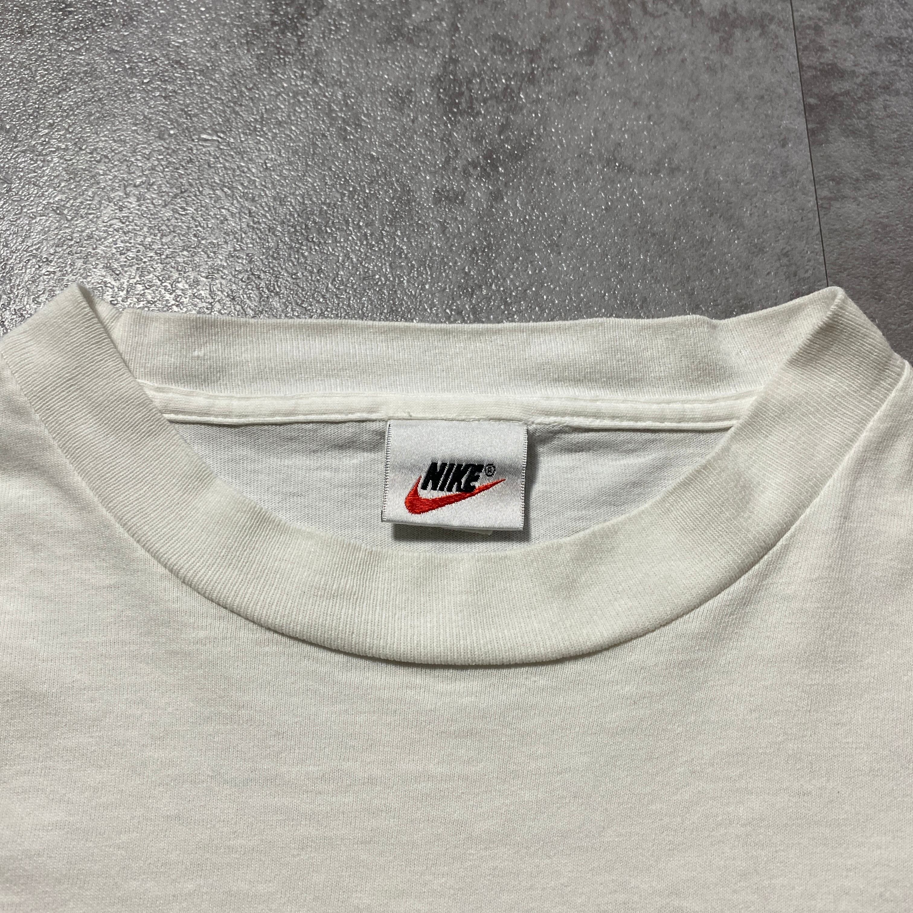 【USA製】90's NIKE ナイキ スウォッシュ プリント 銀タグ ホワイト 白 Tシャツ