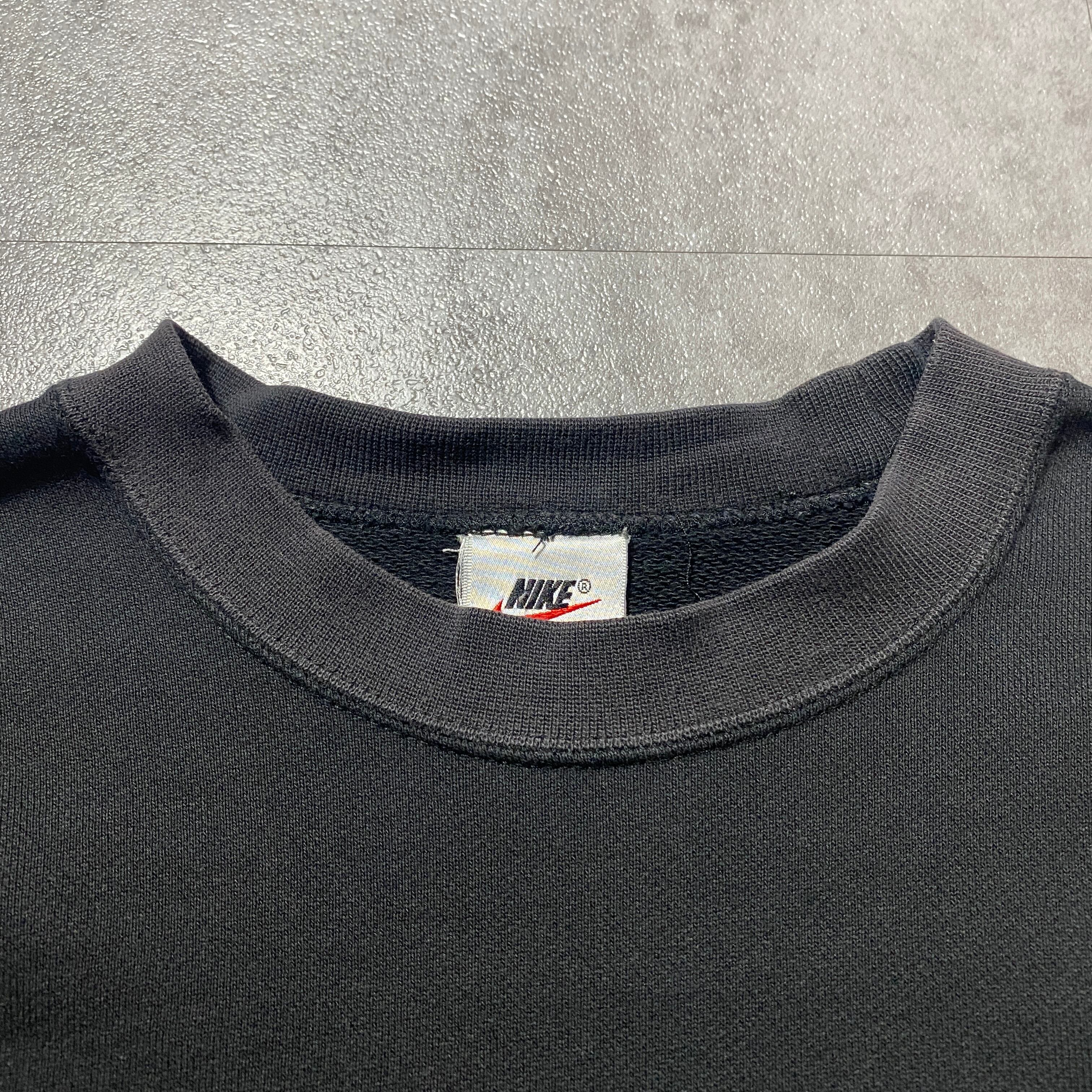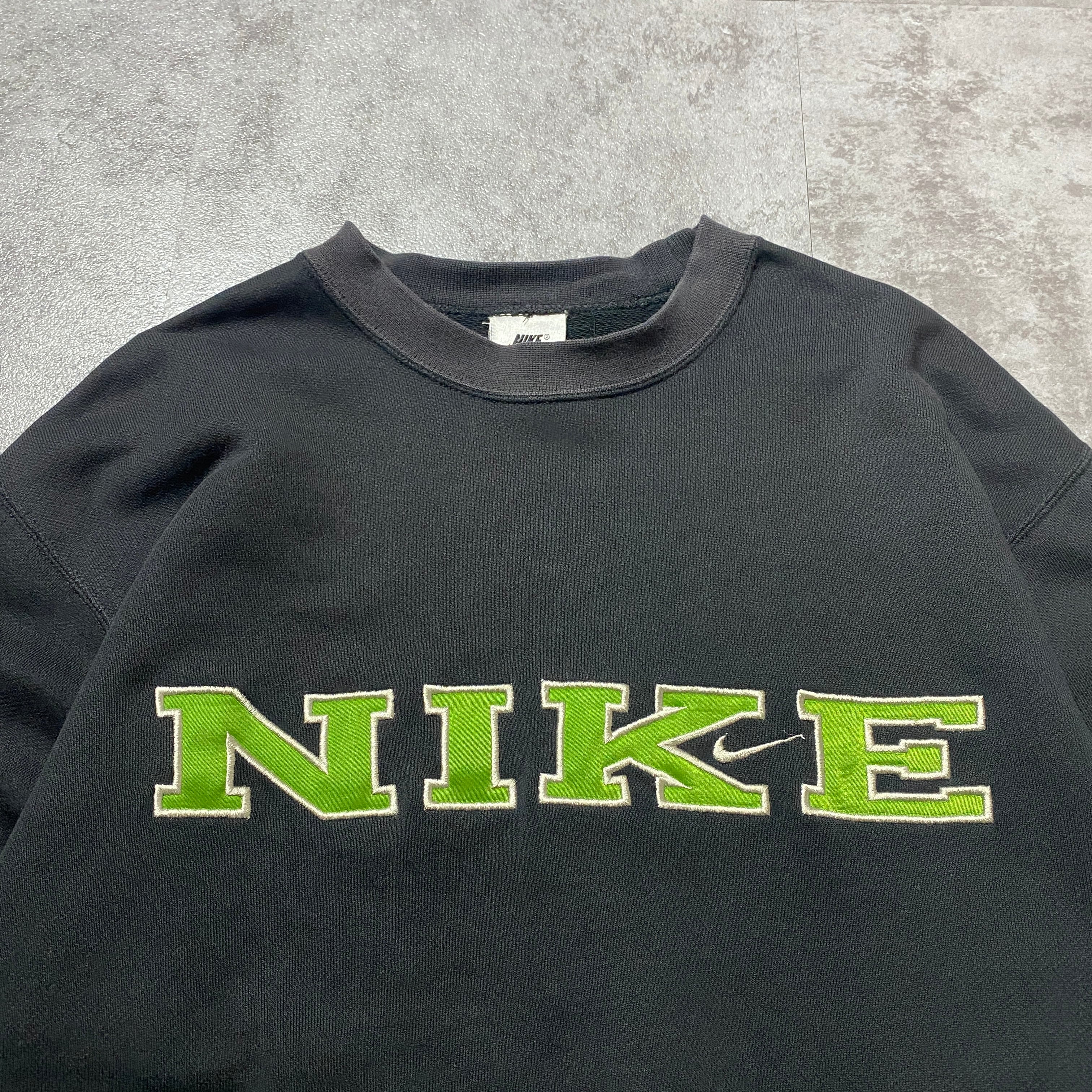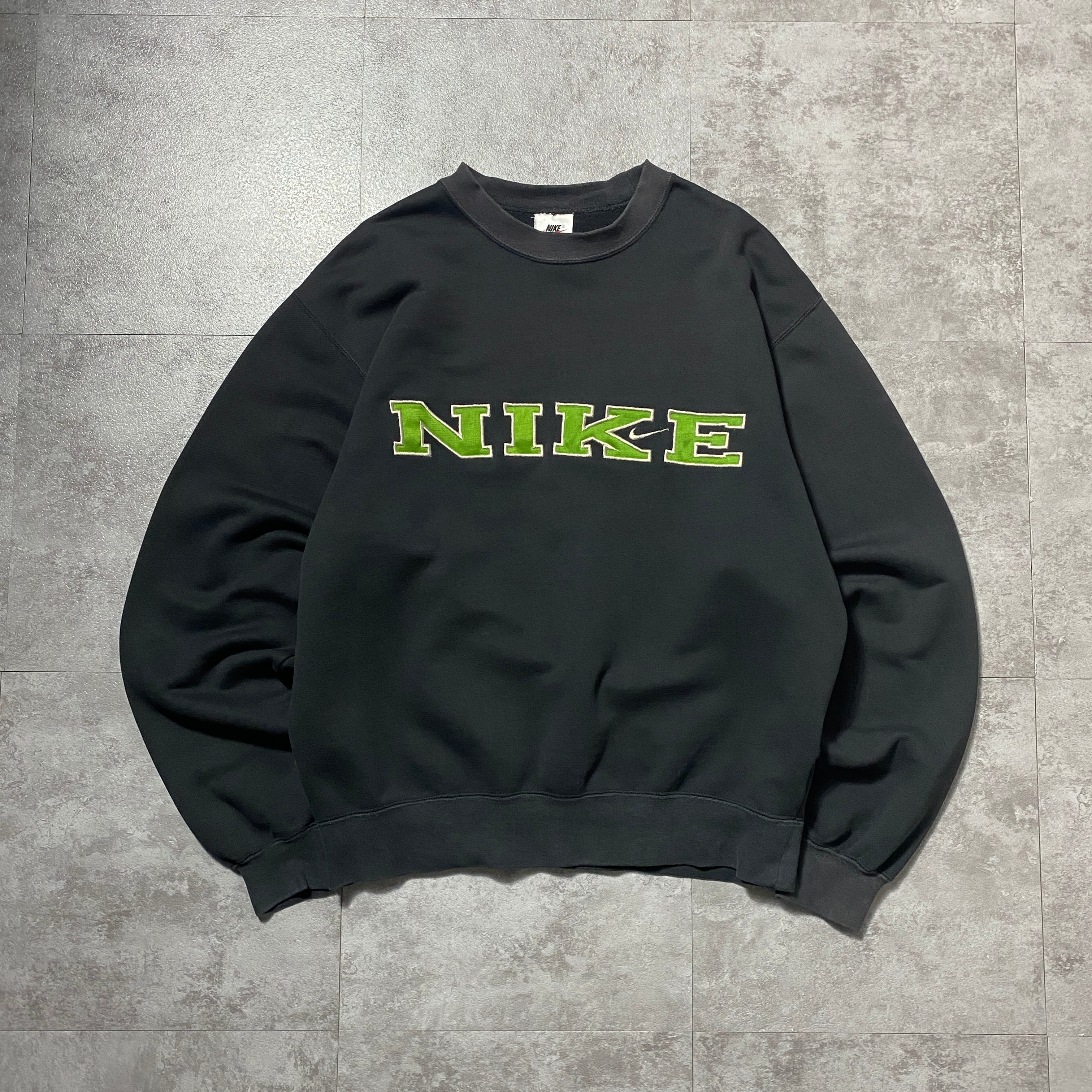 90's NIKE ナイキ スウォッシュ×文字 刺繍ロゴ ボックスシルエット ブラック 黒 スウェット トレーナー