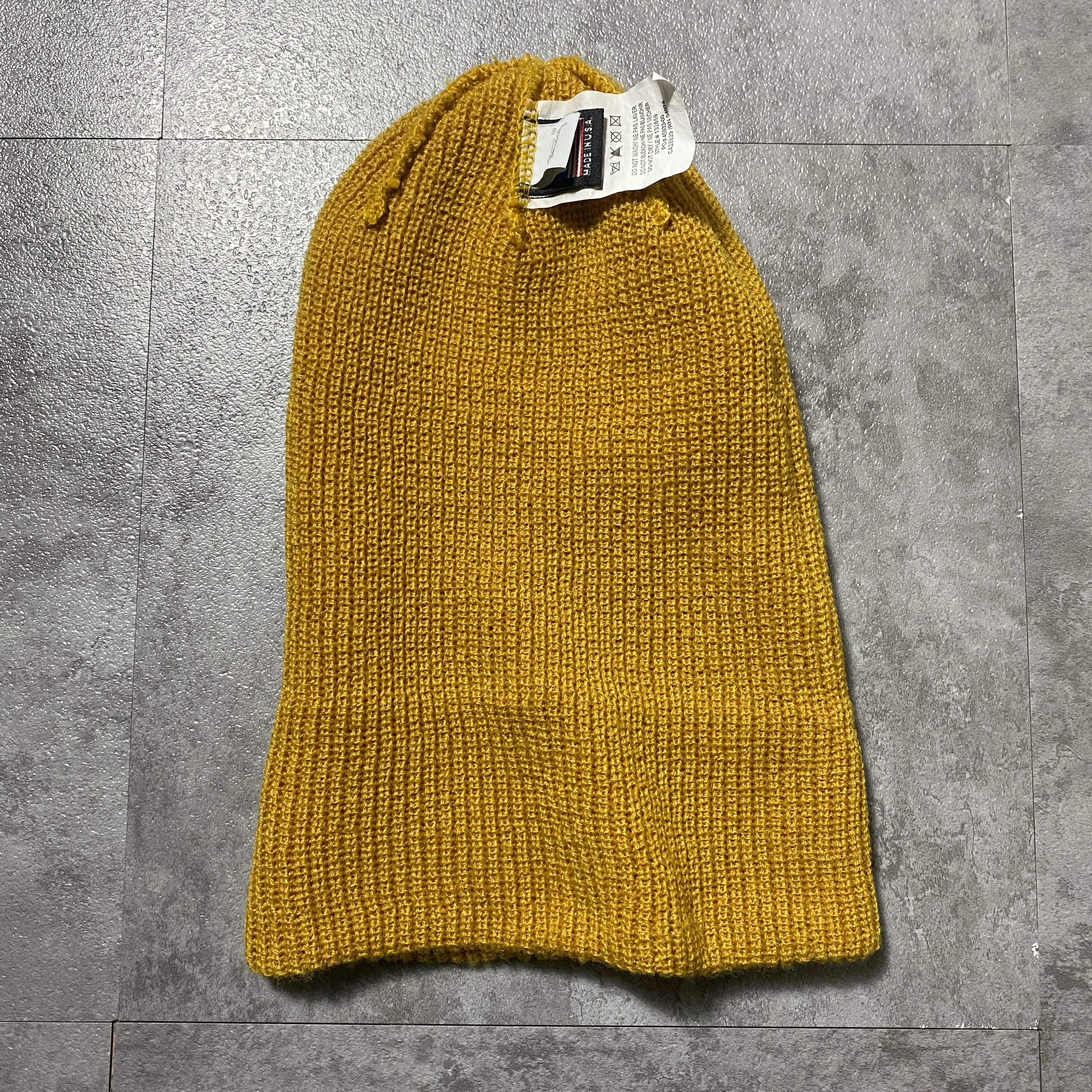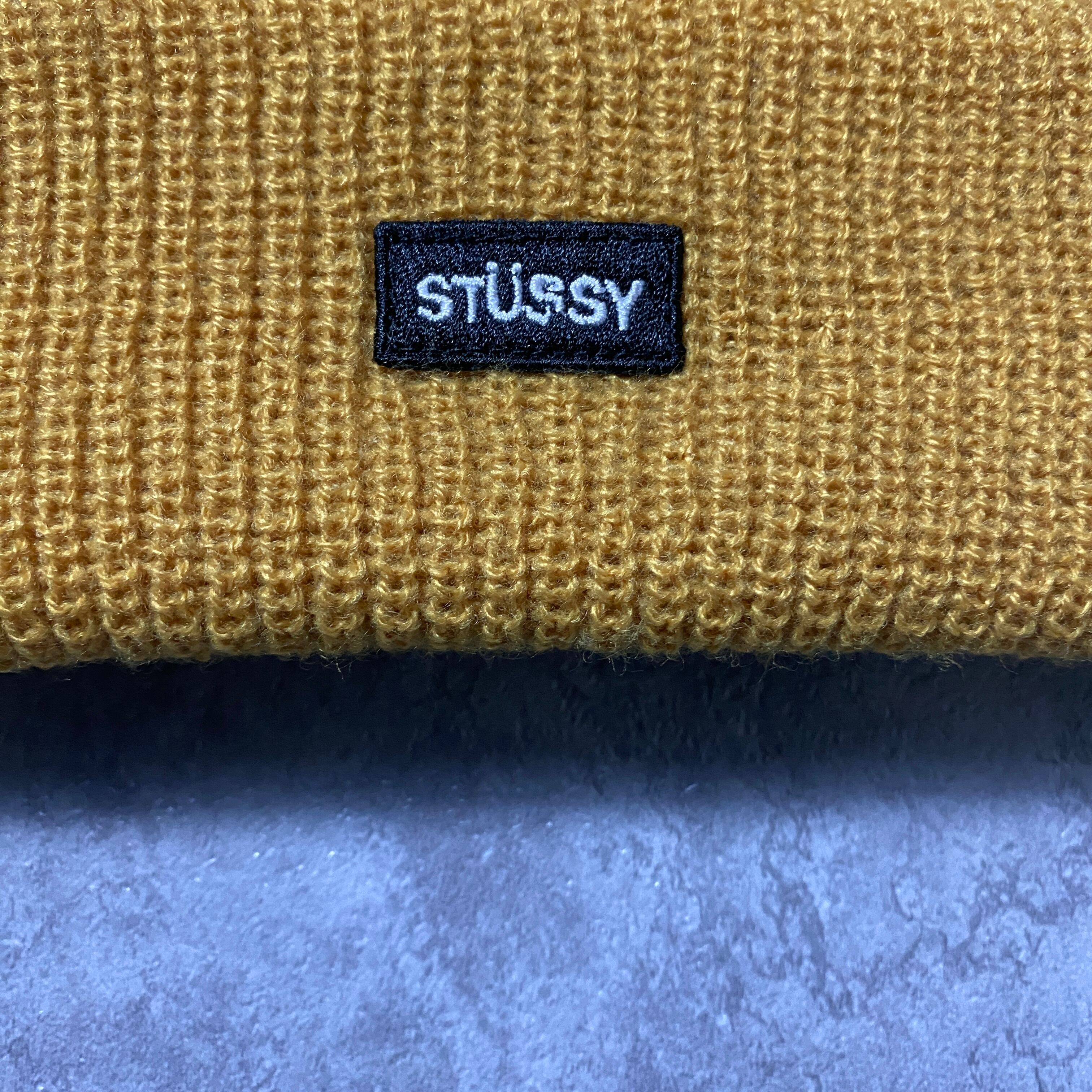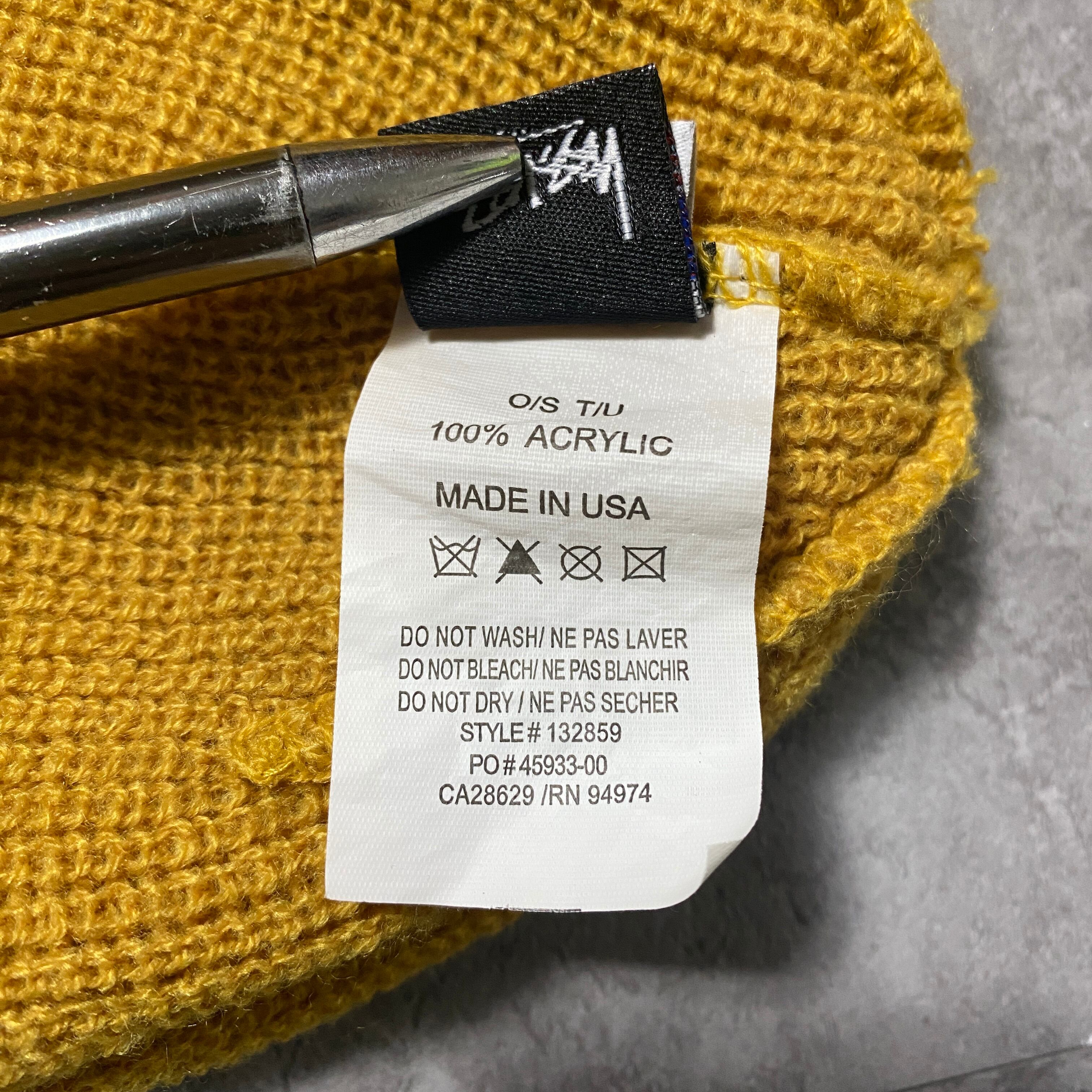 【USA製】stussy ステューシー 刺繍ロゴ マスタードイエロー ニット帽 ニットキャップ ビーニー