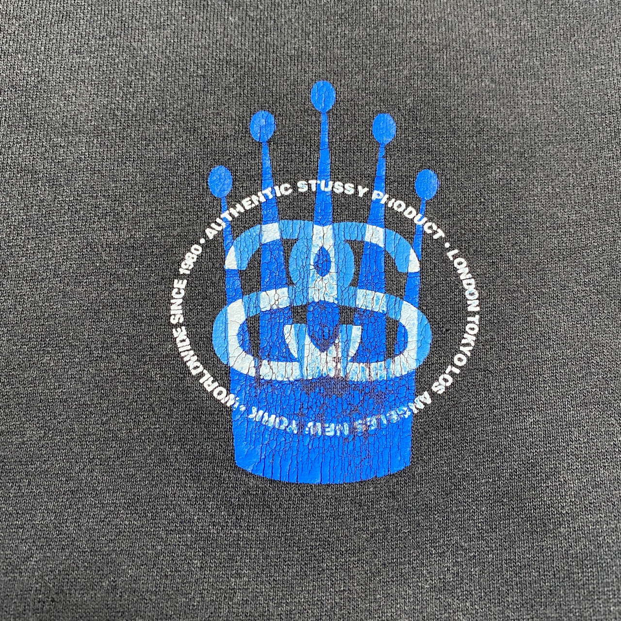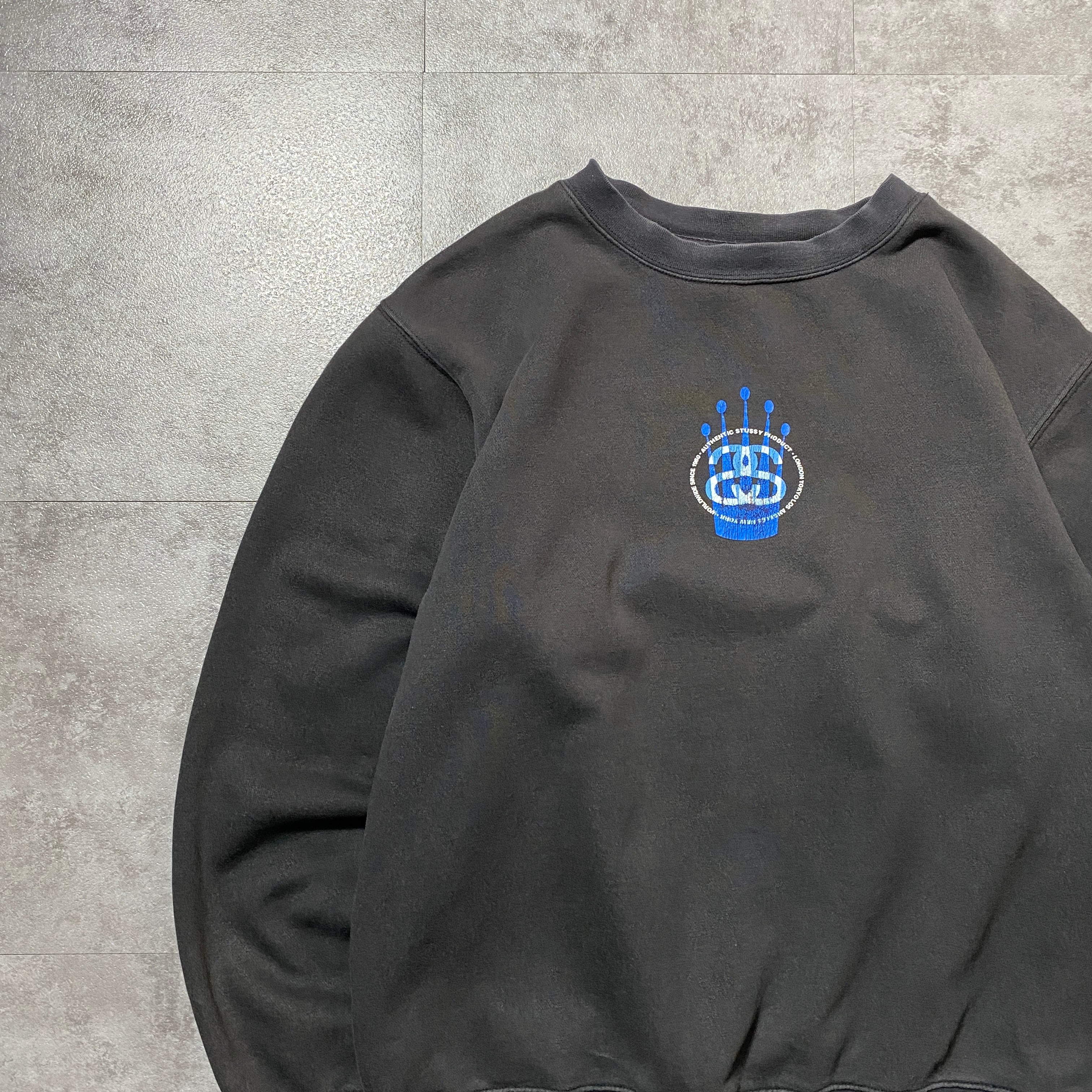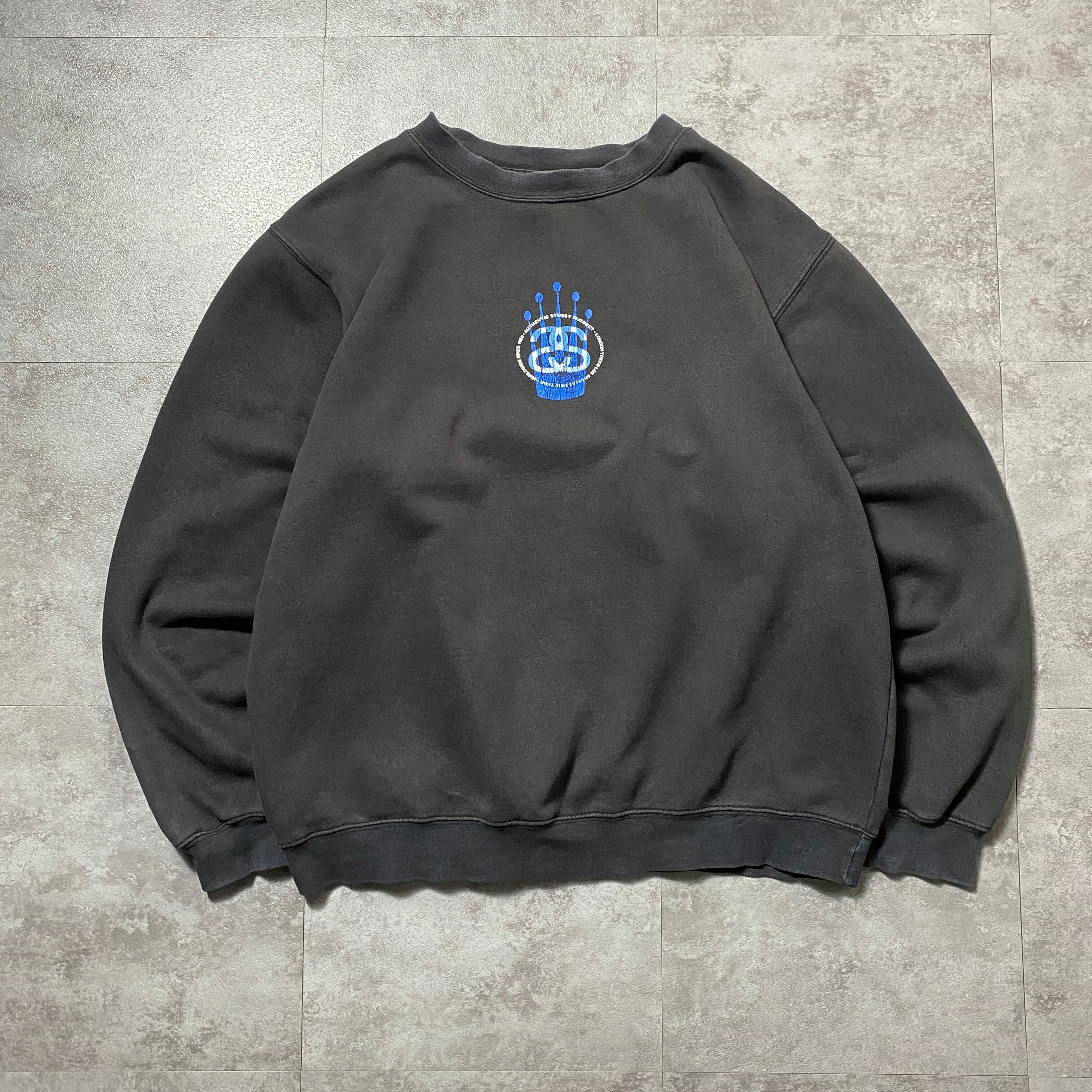 90's old stussy ステューシー クラウン プリント フェードブラック スウェット トレーナー