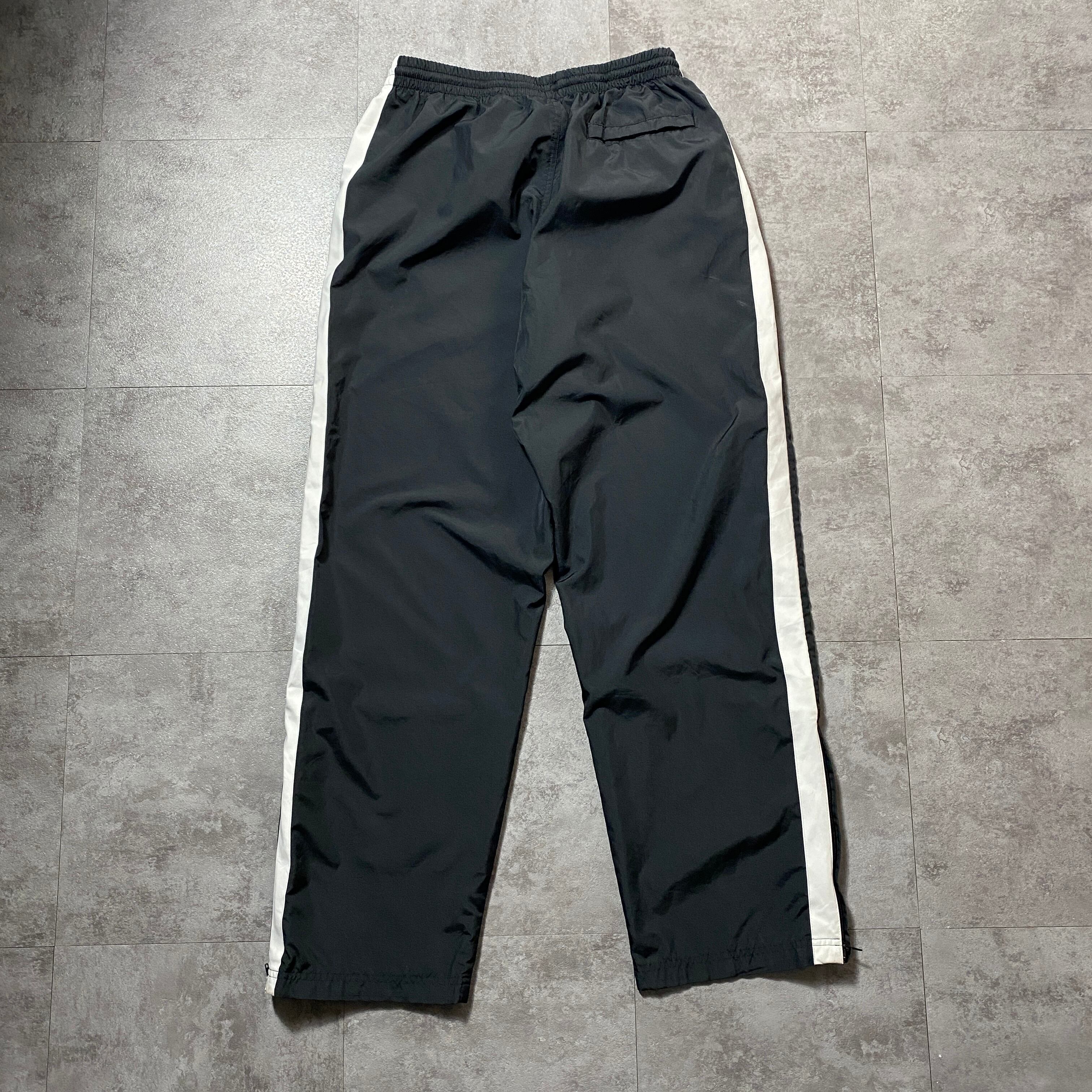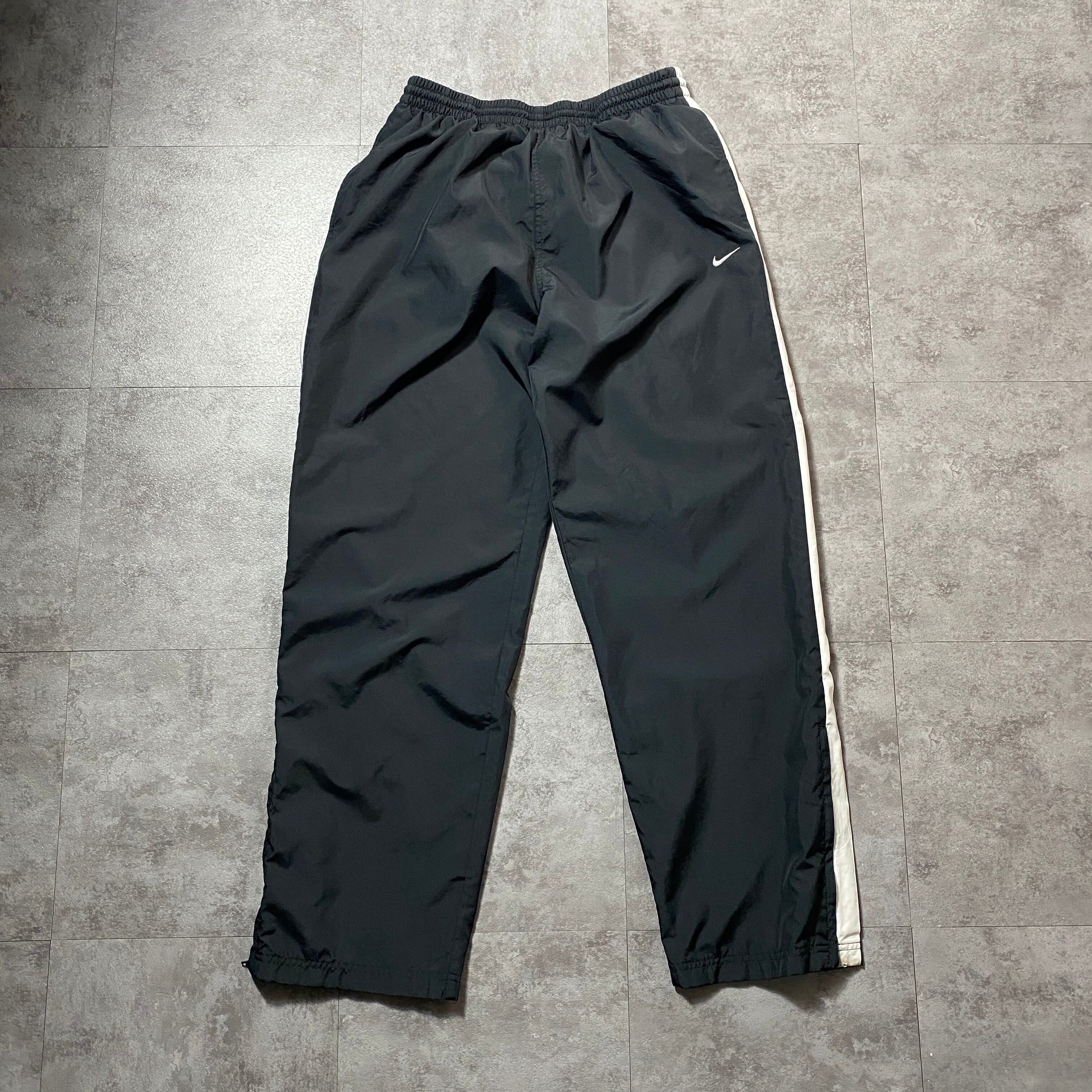 00's NIKE ナイキ スウォッシュ 刺繍ロゴ サイドライン ブラック 黒 ナイロン トラックパンツ