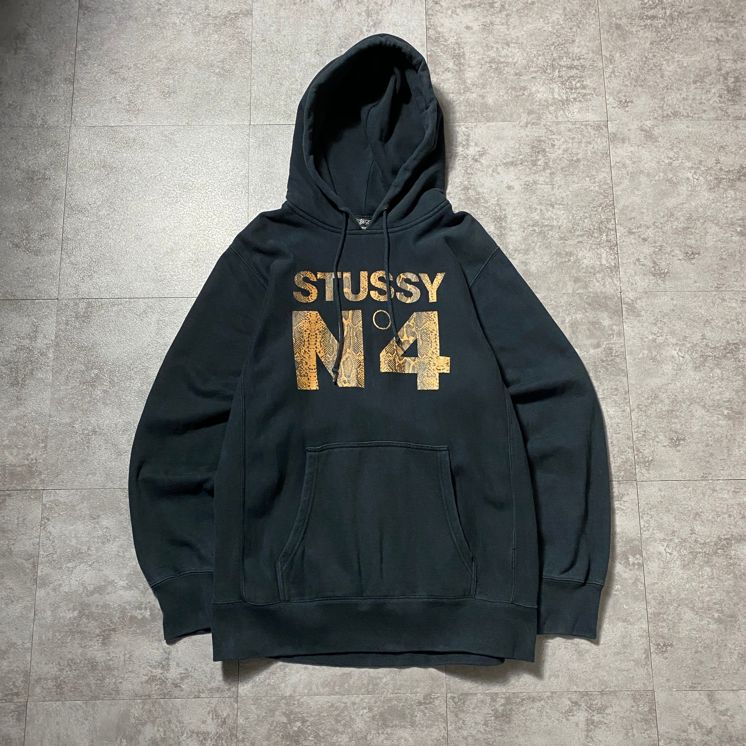 00's old stussy N°4 ステューシー コブラ柄 プリント リバースウィーブ ブラック 黒 スウェット パーカー