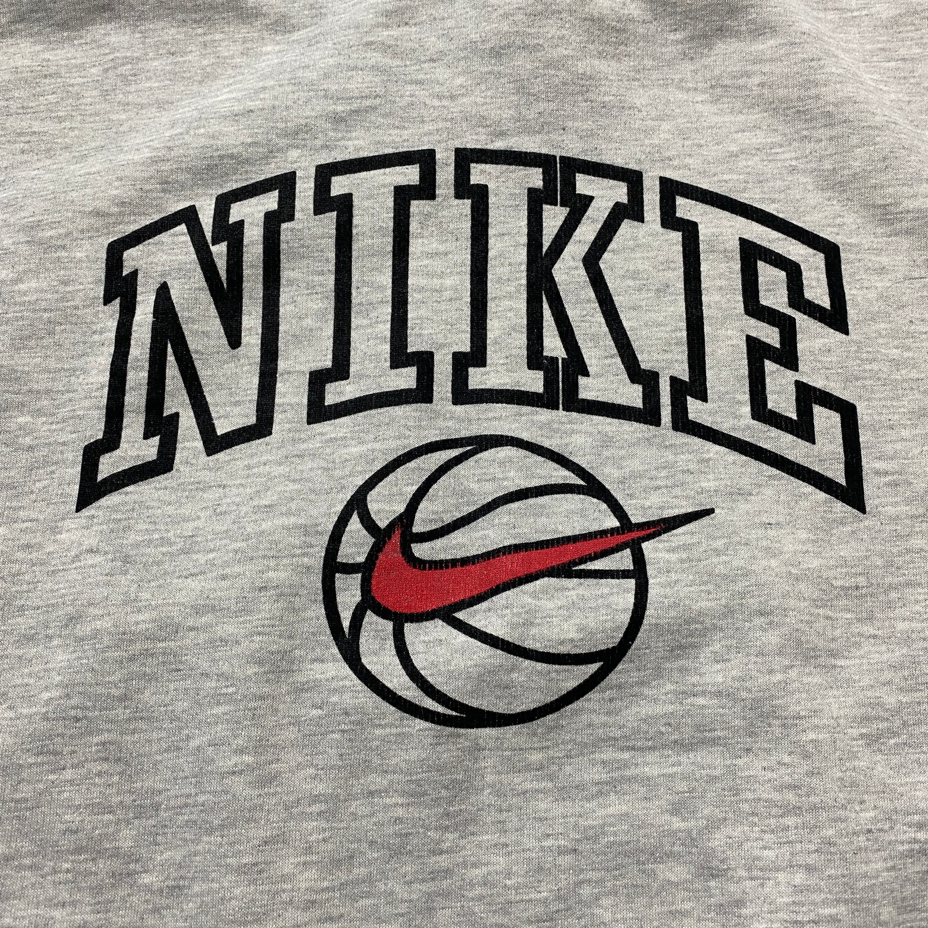 90's NIKE ナイキ スウォッシュ 刺繍ワンポイント バックプリント グレー スウェット パーカー