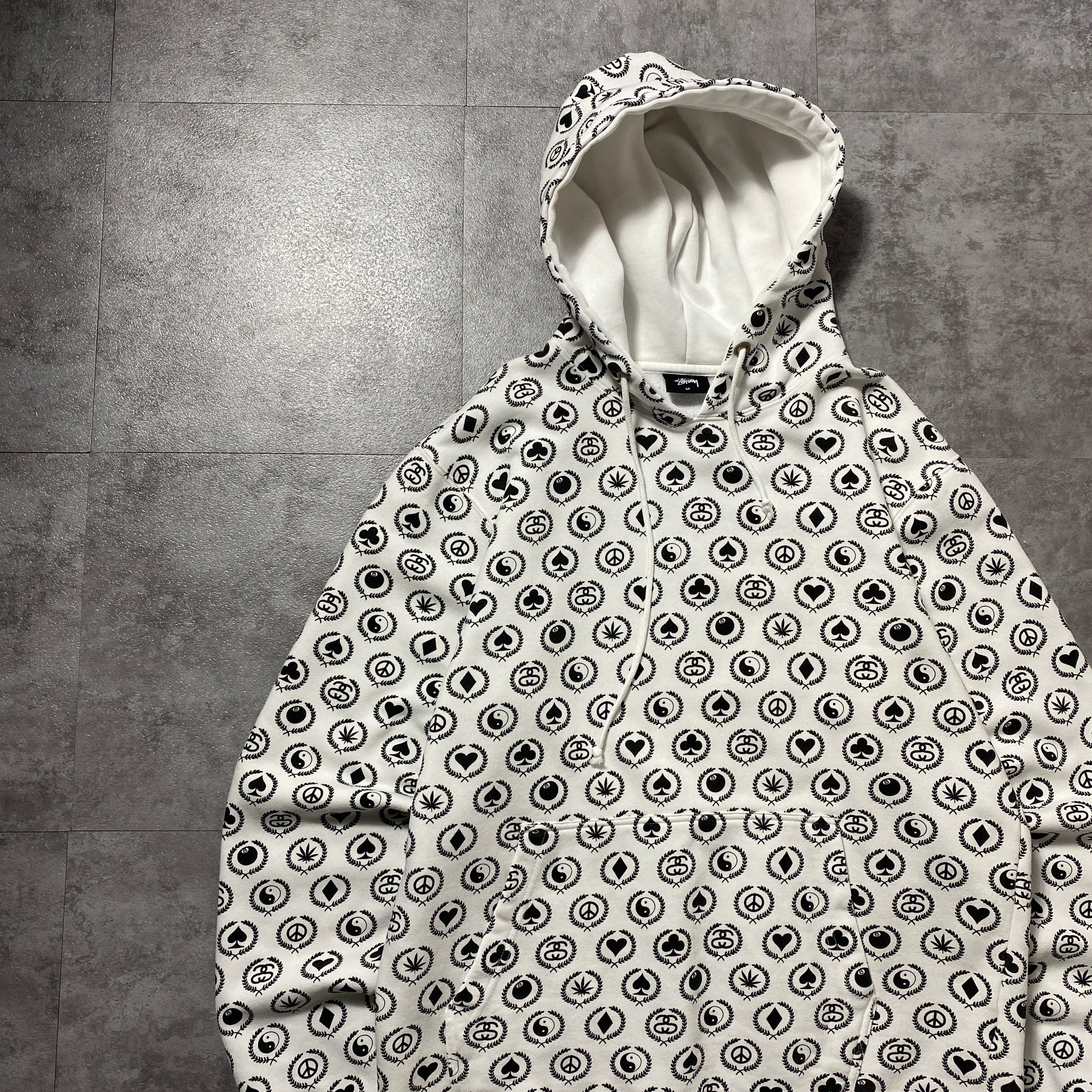 stussy ステューシー トランプ柄 ランダムプリント 総柄デザイン ホワイト 白 スウェット パーカー
