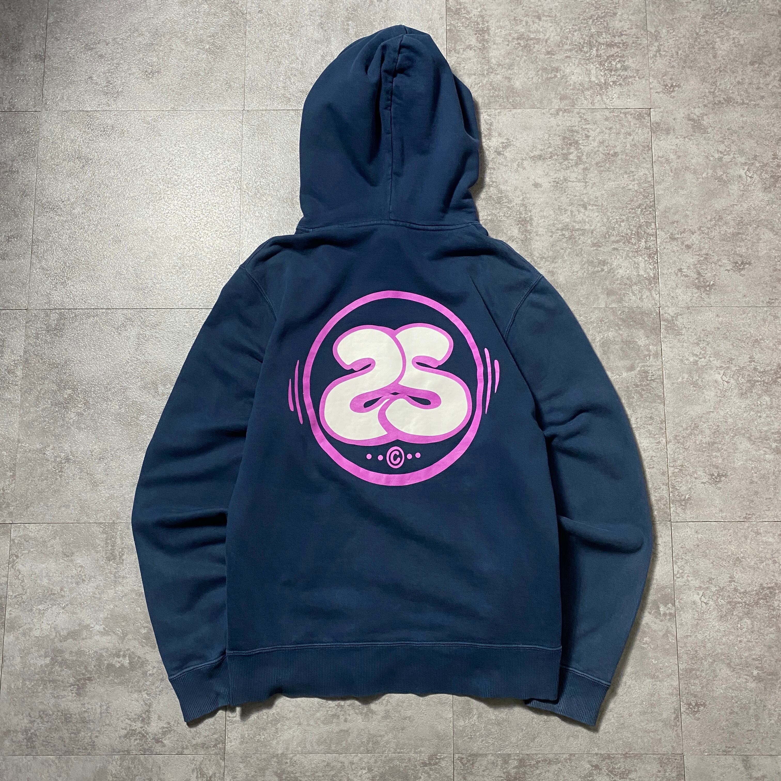 00's old stussy ステューシー SSリンク アートデザイン 両面プリント ネイビー スウェット パーカー