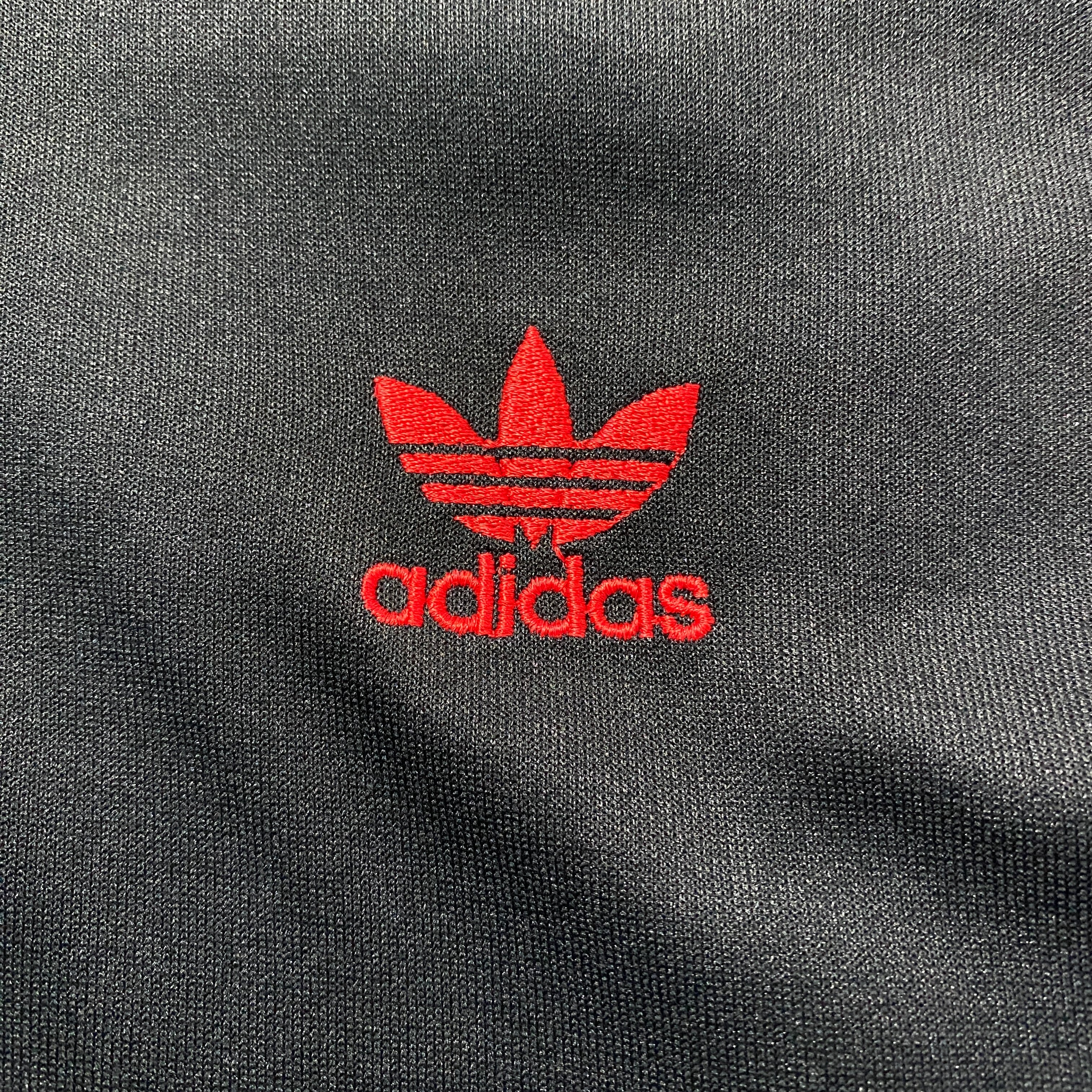90's adidas アディダス トレフォイル 刺繍ロゴ ラインリブ ノーカラー ジャージ トラックジャケット