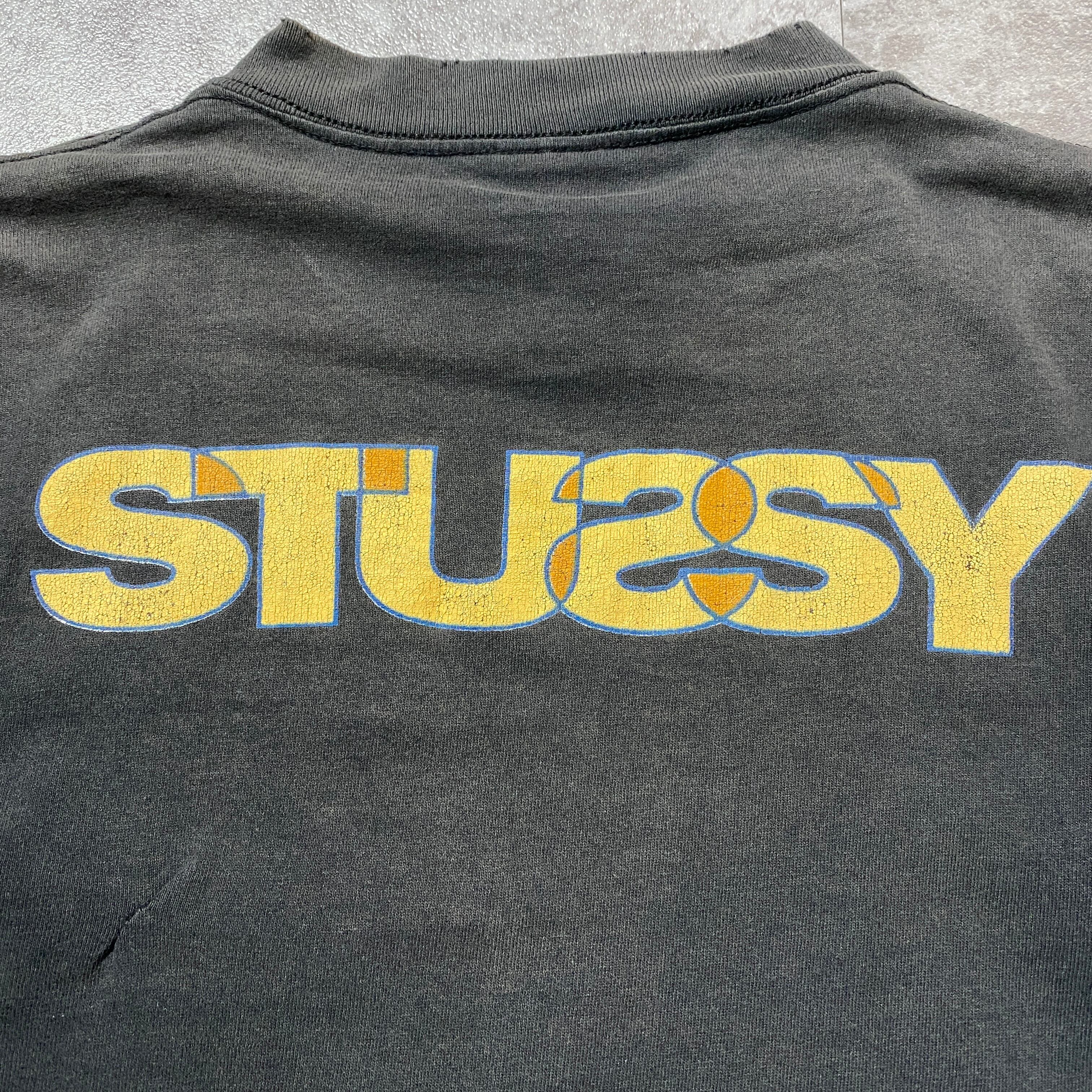 【USA製】90's old stussy ステューシー SSリンク 両面プリント 最高フェード シングルステッチ ブラック 黒 Tシャツ