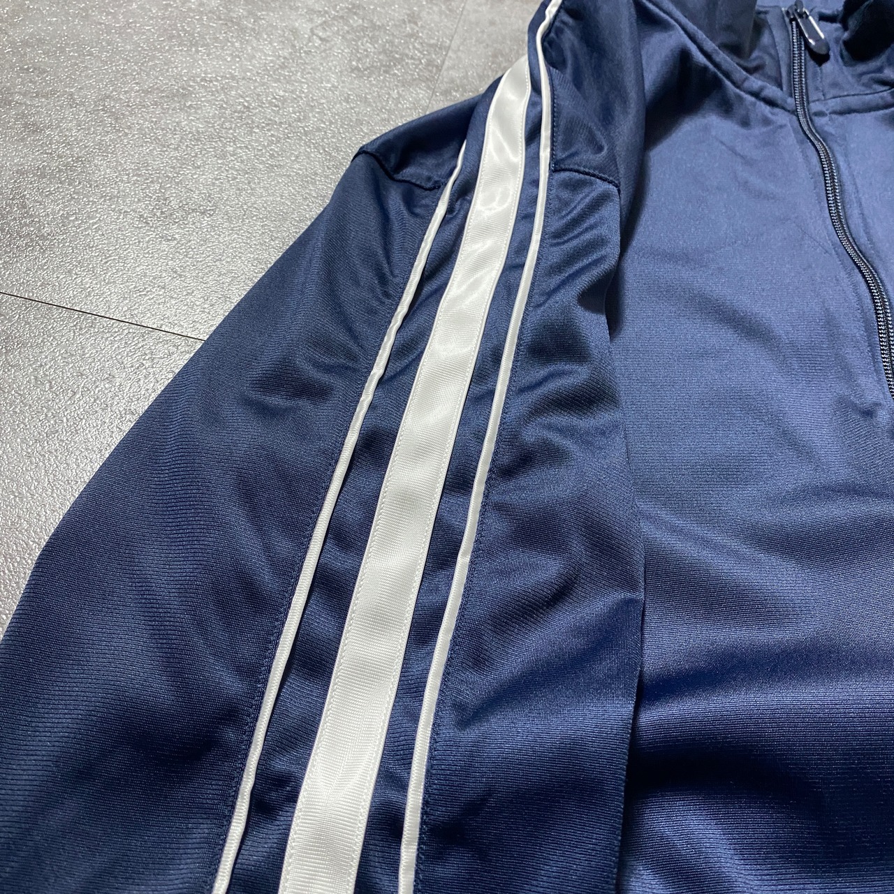 00's NIKE ナイキ スウォッシュ 刺繍ワンポイント サイドライン ネイビー ジャージ トラックジャケット