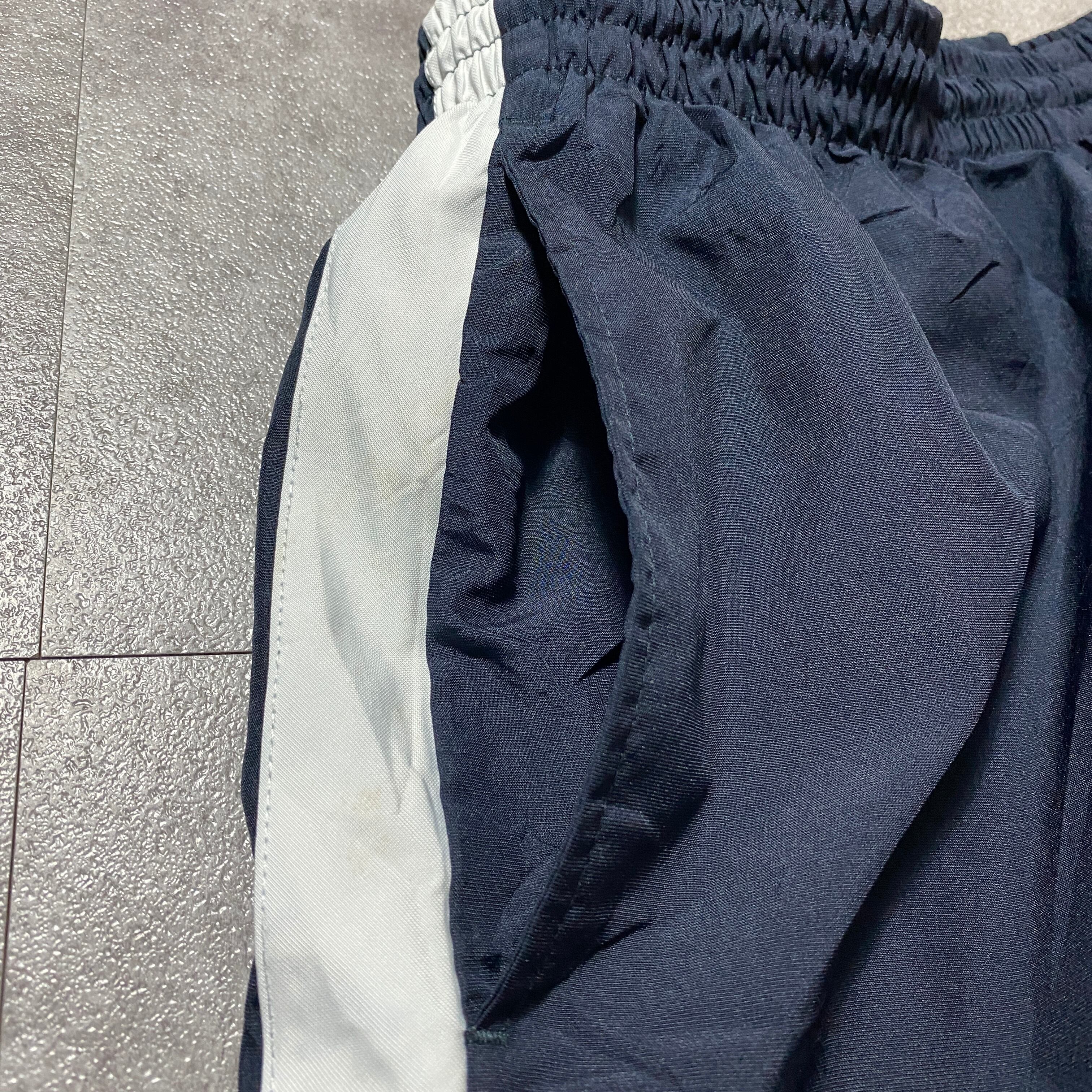 00's NIKE ナイキ スウォッシュ 刺繍ロゴ サイドライン ネイビー ナイロン トラックパンツ