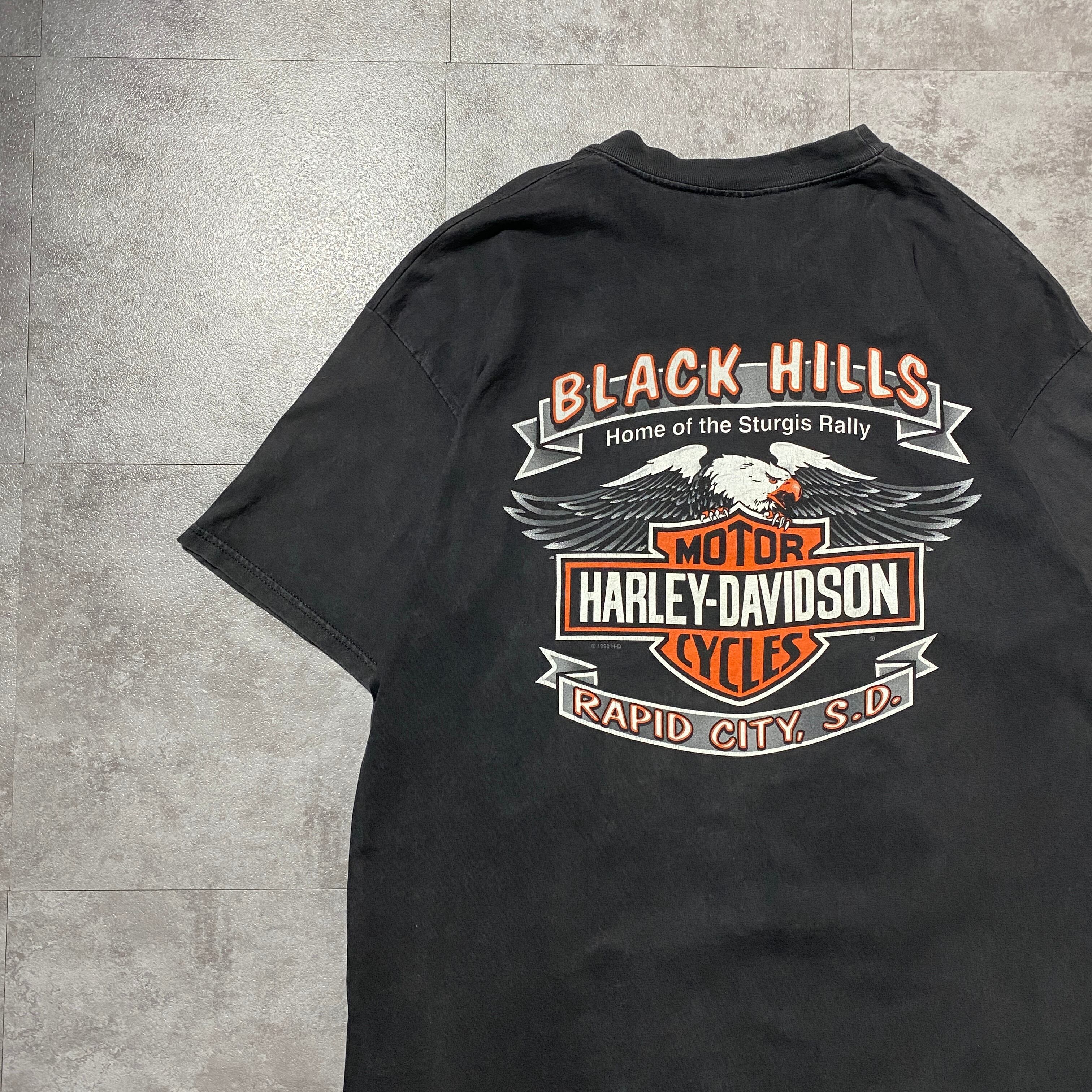【USA製・XL】90's Harley-Davidson ハーレーダビッドソン イーグル 両面プリント フェードブラック Tシャツ
