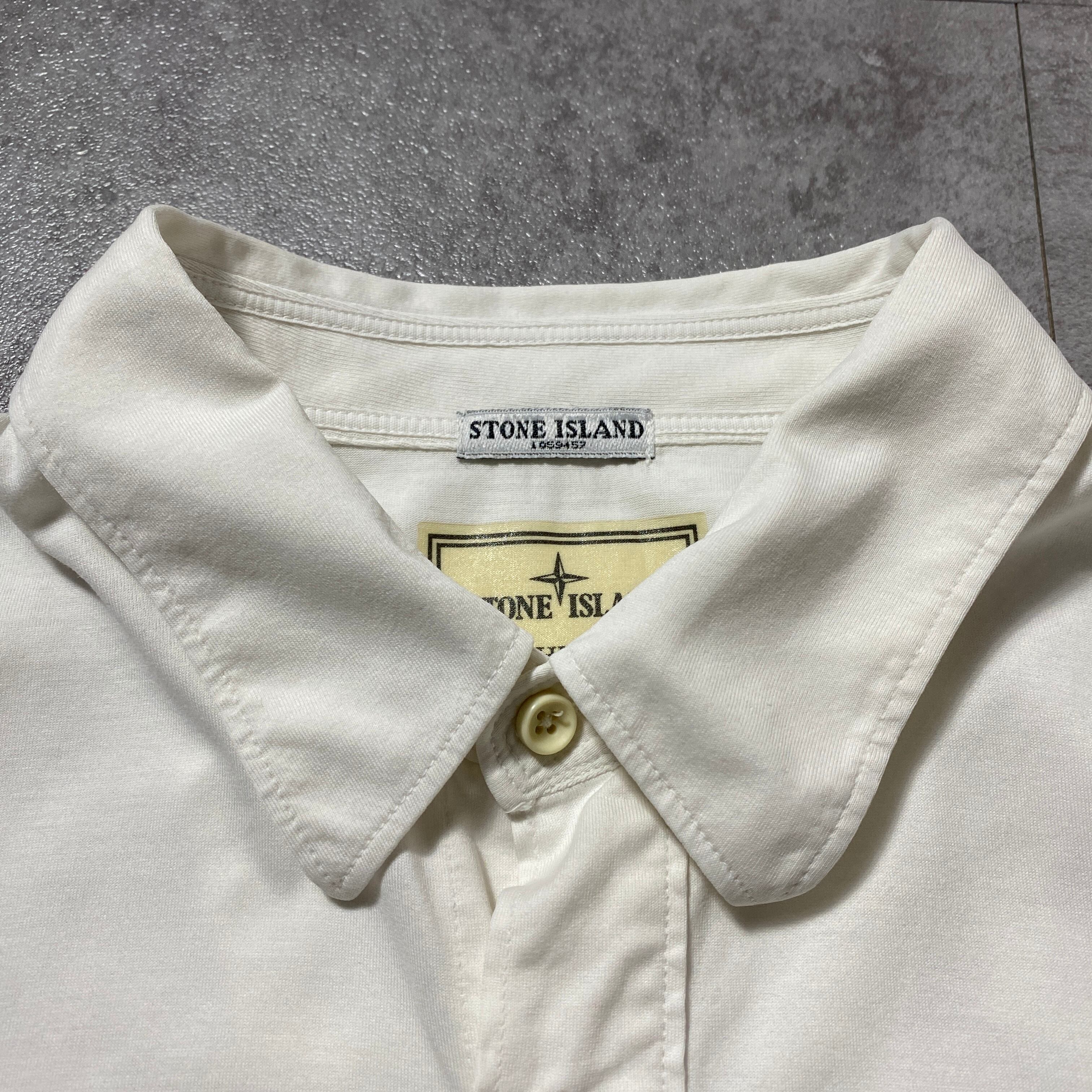 STONE ISLAND ストーンアイランド 刺繍ロゴ ストレッチ 七分丈 ホワイト 白 シャツ