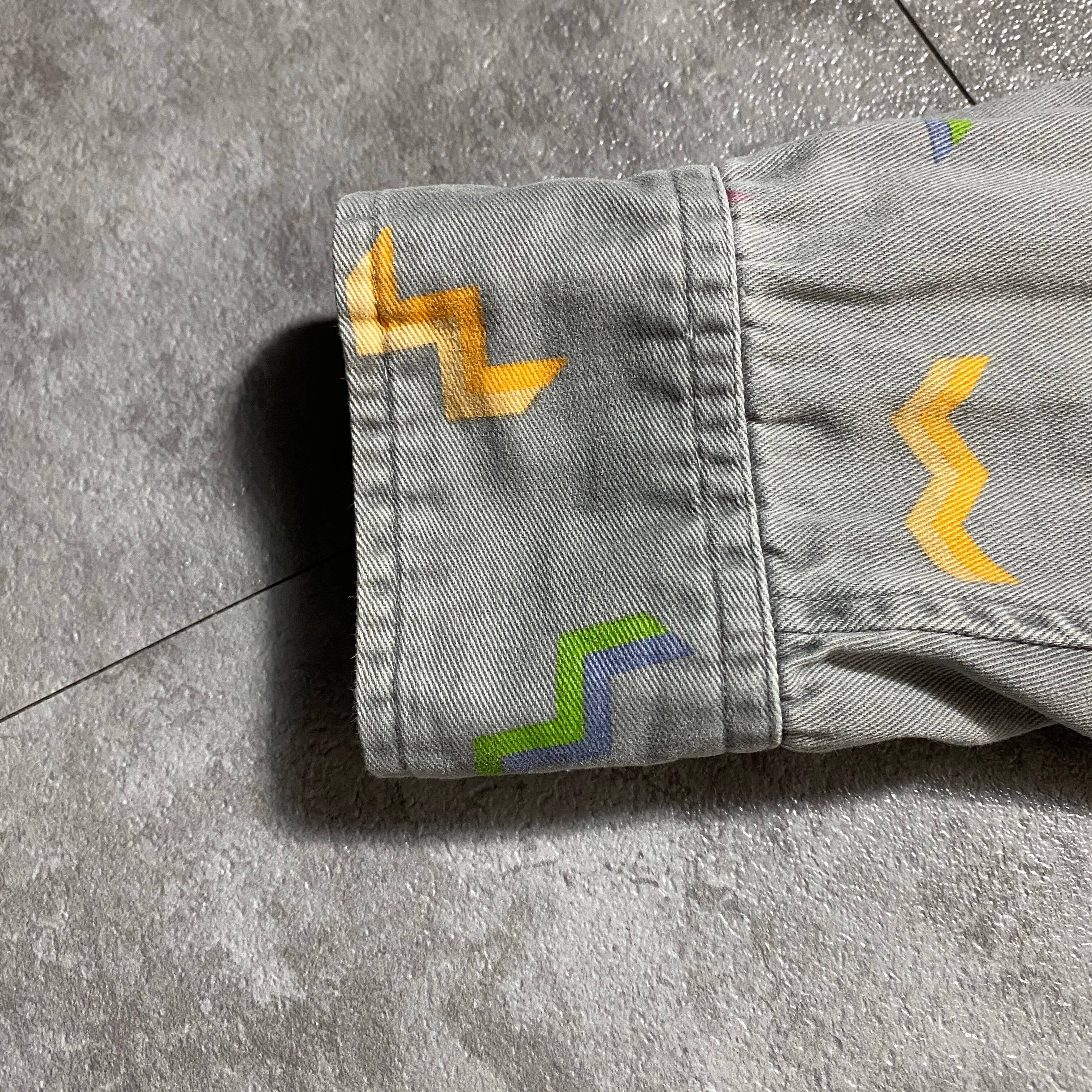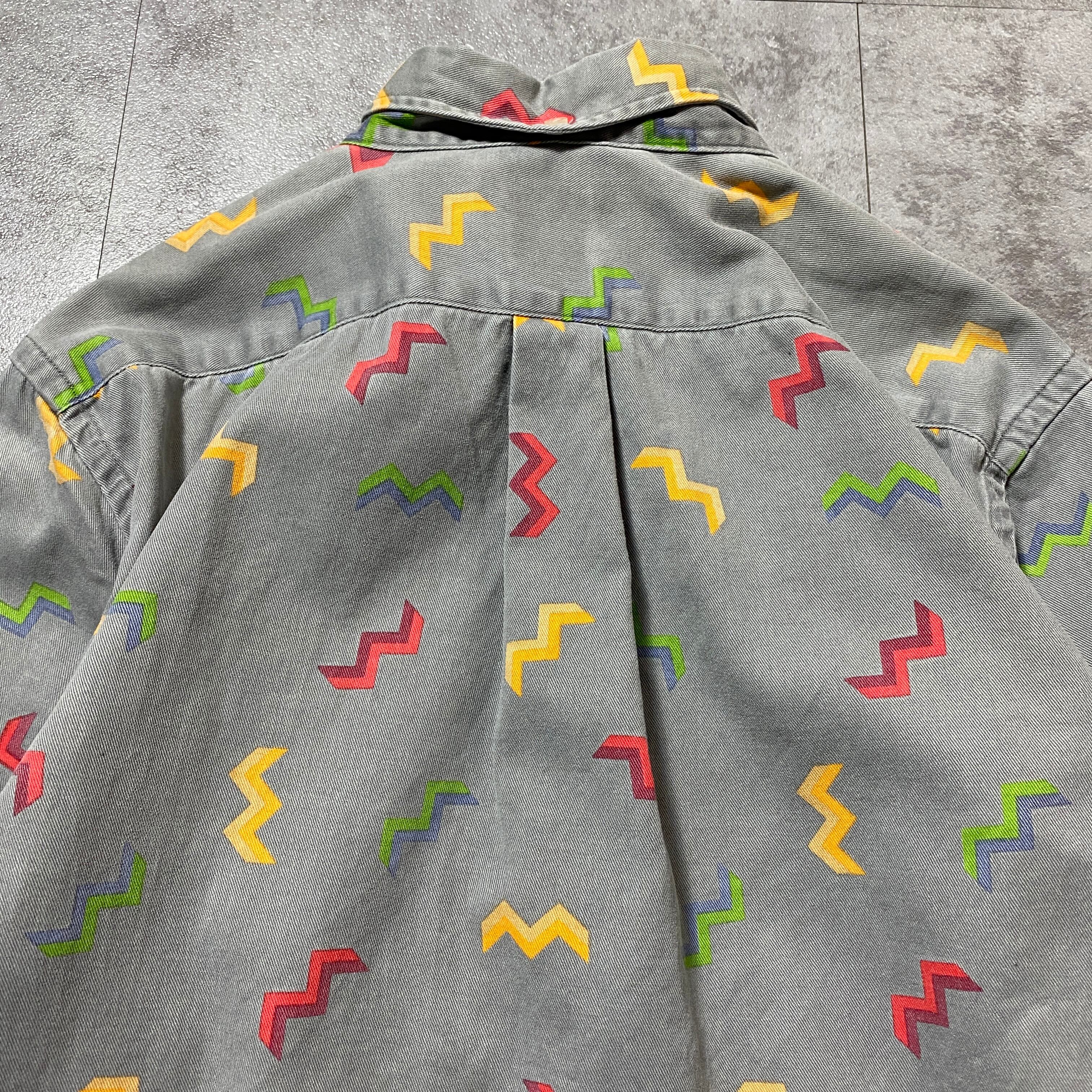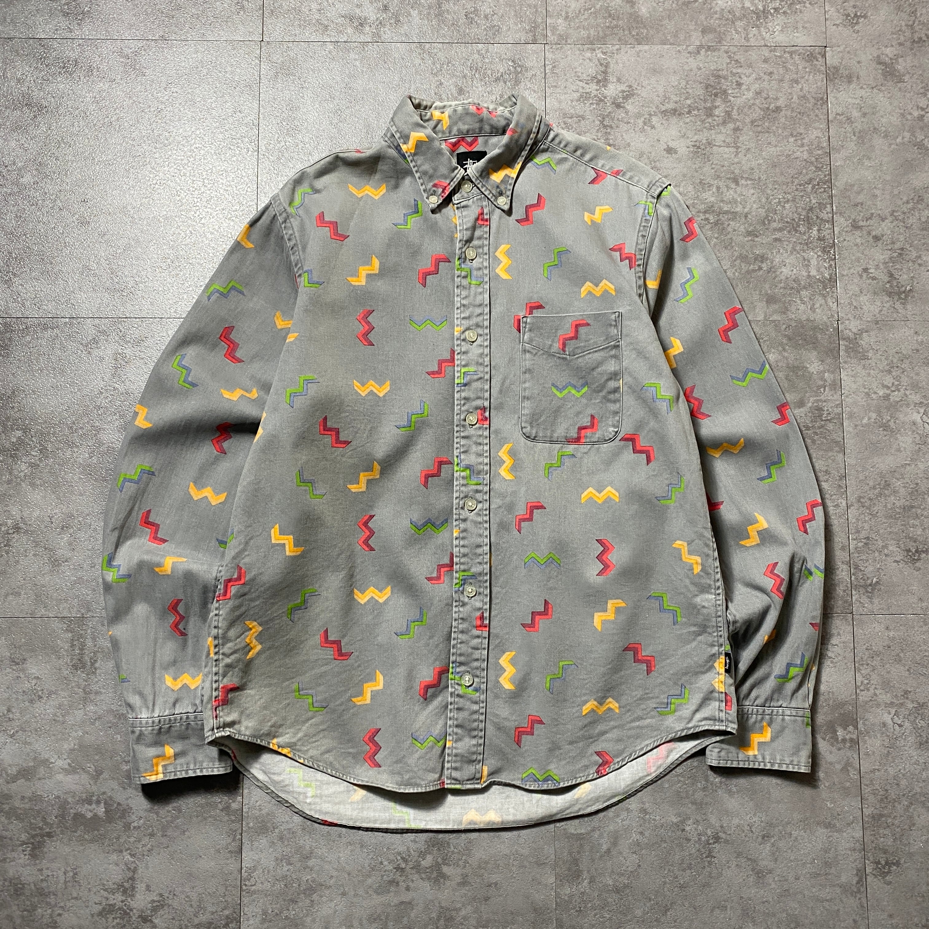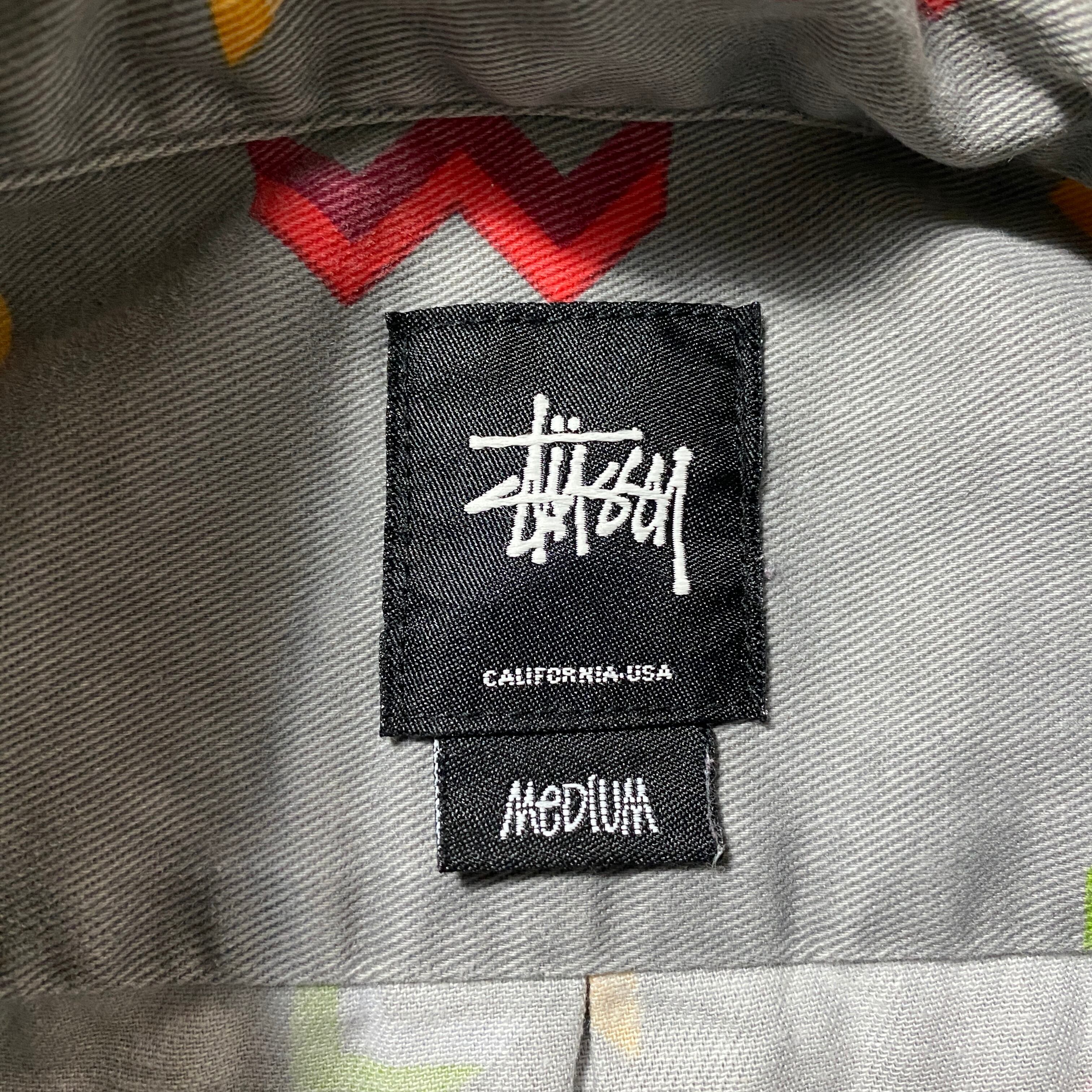 stussy ステューシー 幾何学模様 総柄 コットン ヘビーオンス グレー デザインシャツ