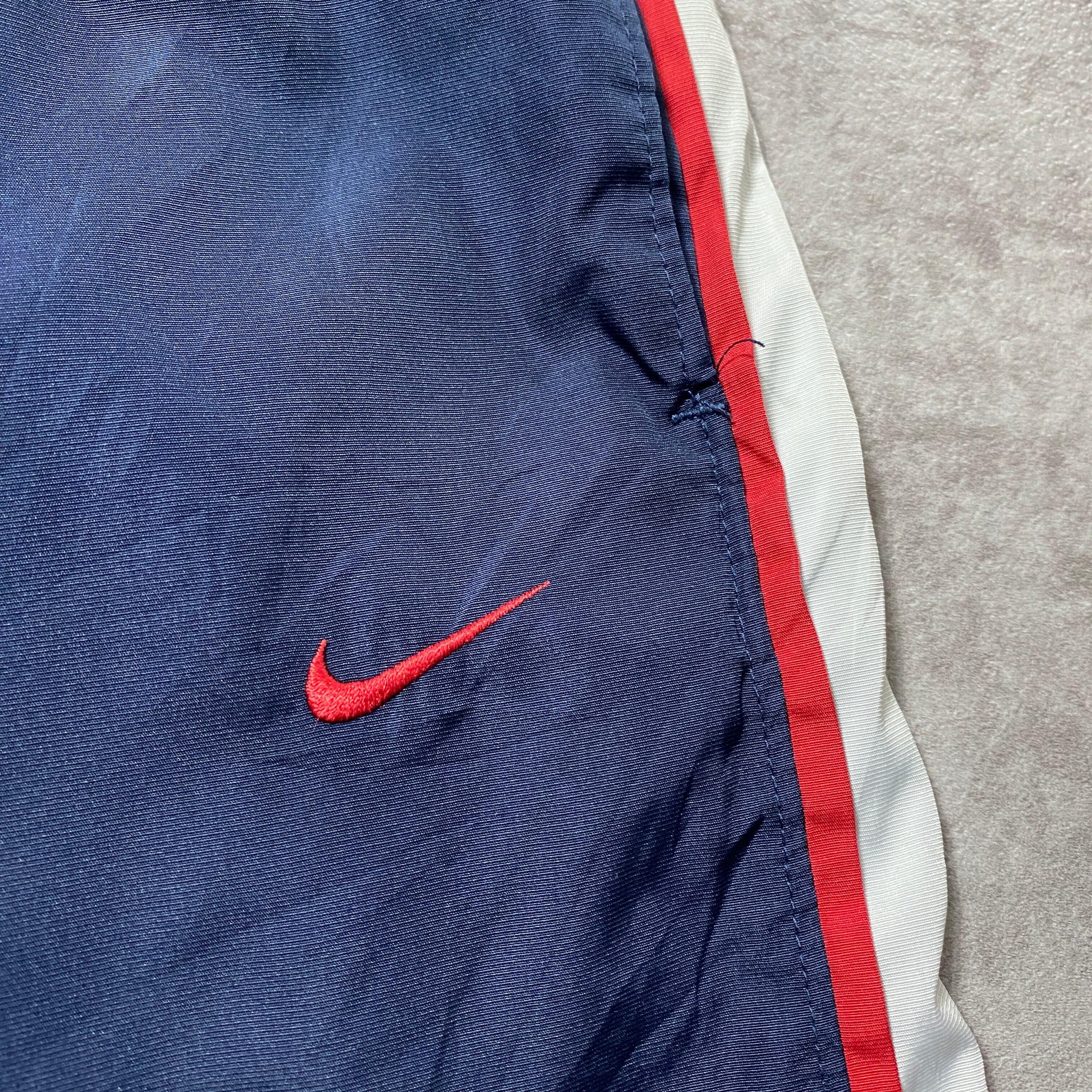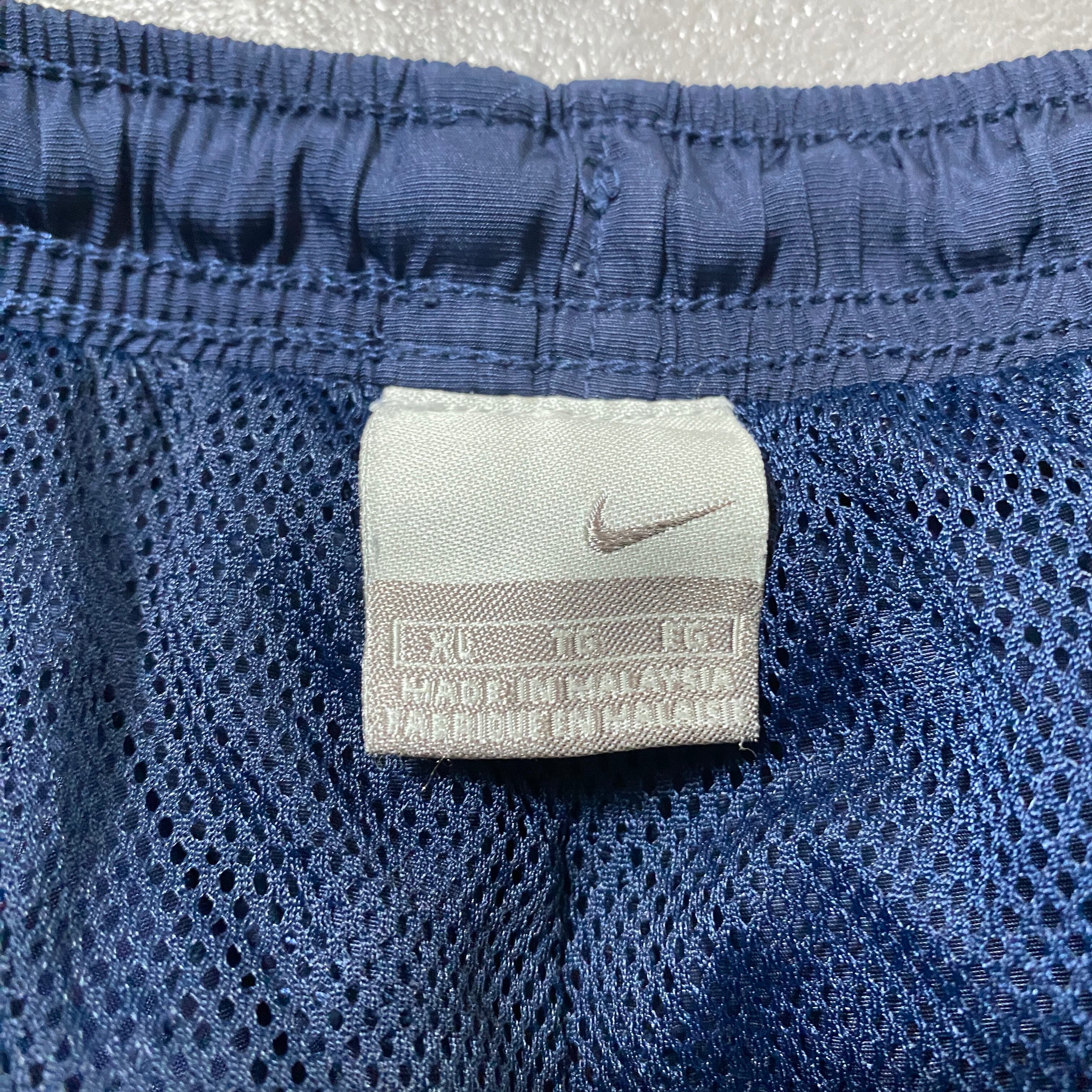 00's NIKE ナイキ スウォッシュ 刺繍ロゴ サイドライン ネイビー ナイロン トラックパンツ
