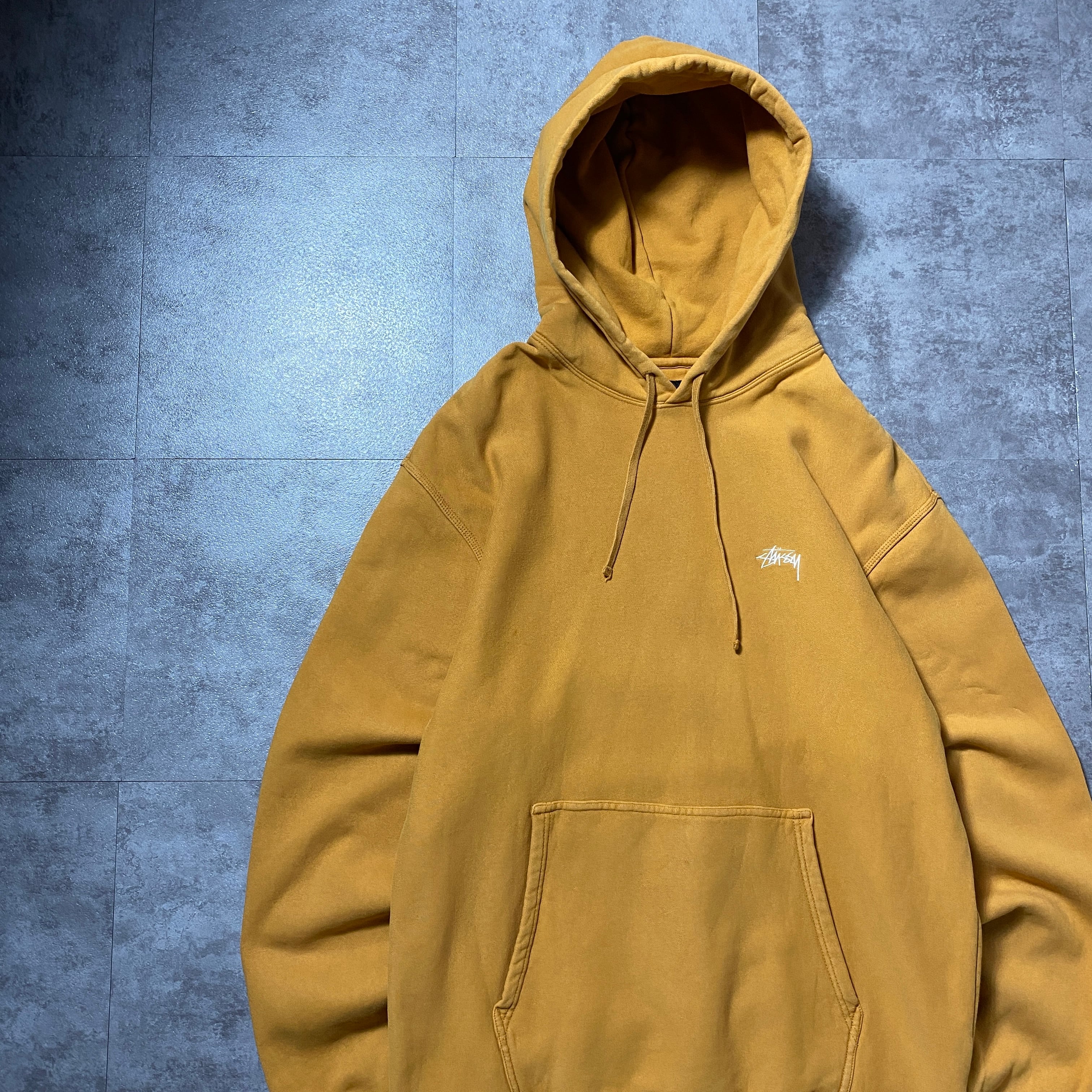 【Size.XL】stussy ステューシー 刺繍ワンポイント ストックロゴ マスタードイエロー ヘビーオンス スウェット パーカー