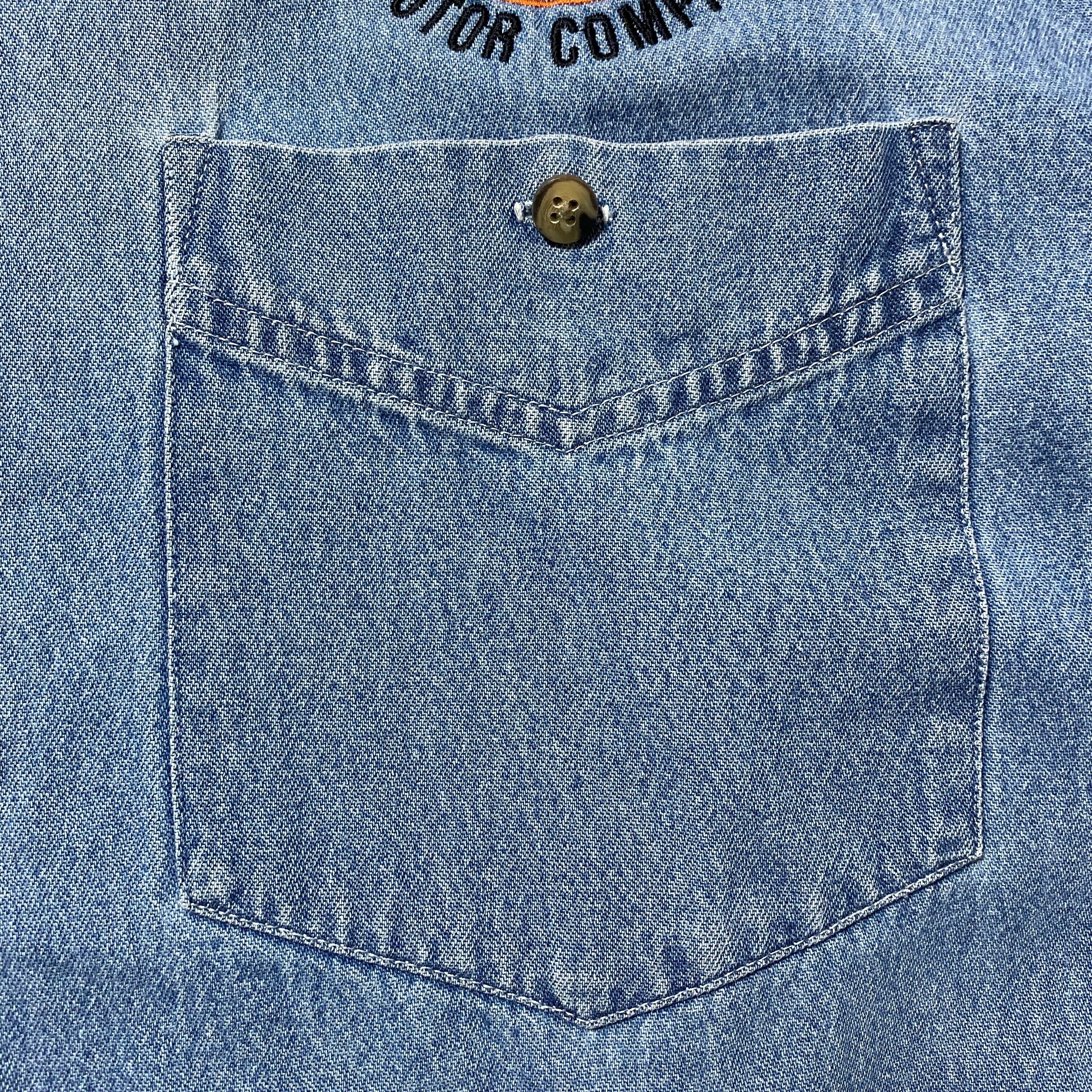 Harley-Davidson ハーレーダビッドソン 刺繍ロゴ 胸ポケット ボタンダウン デニムシャツ