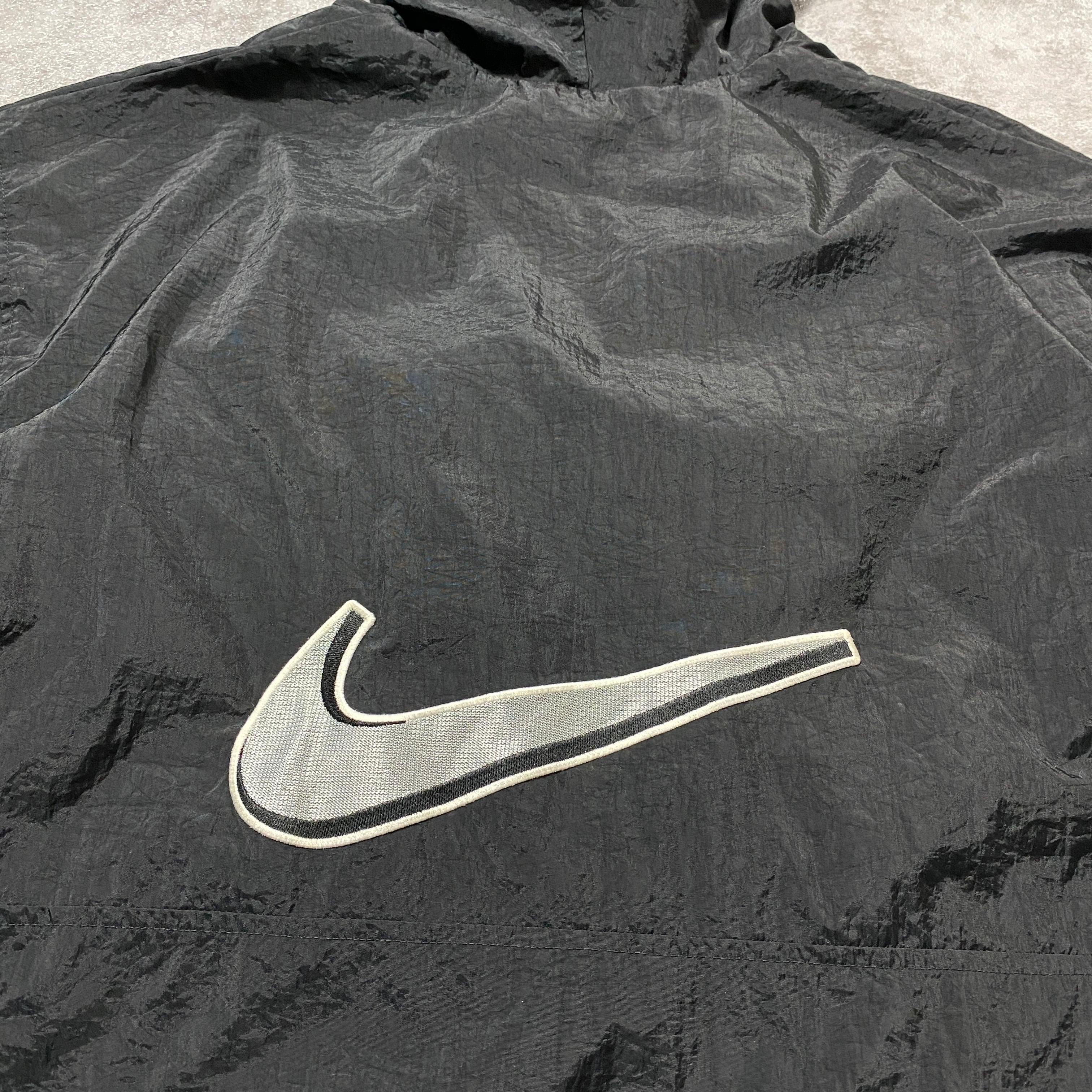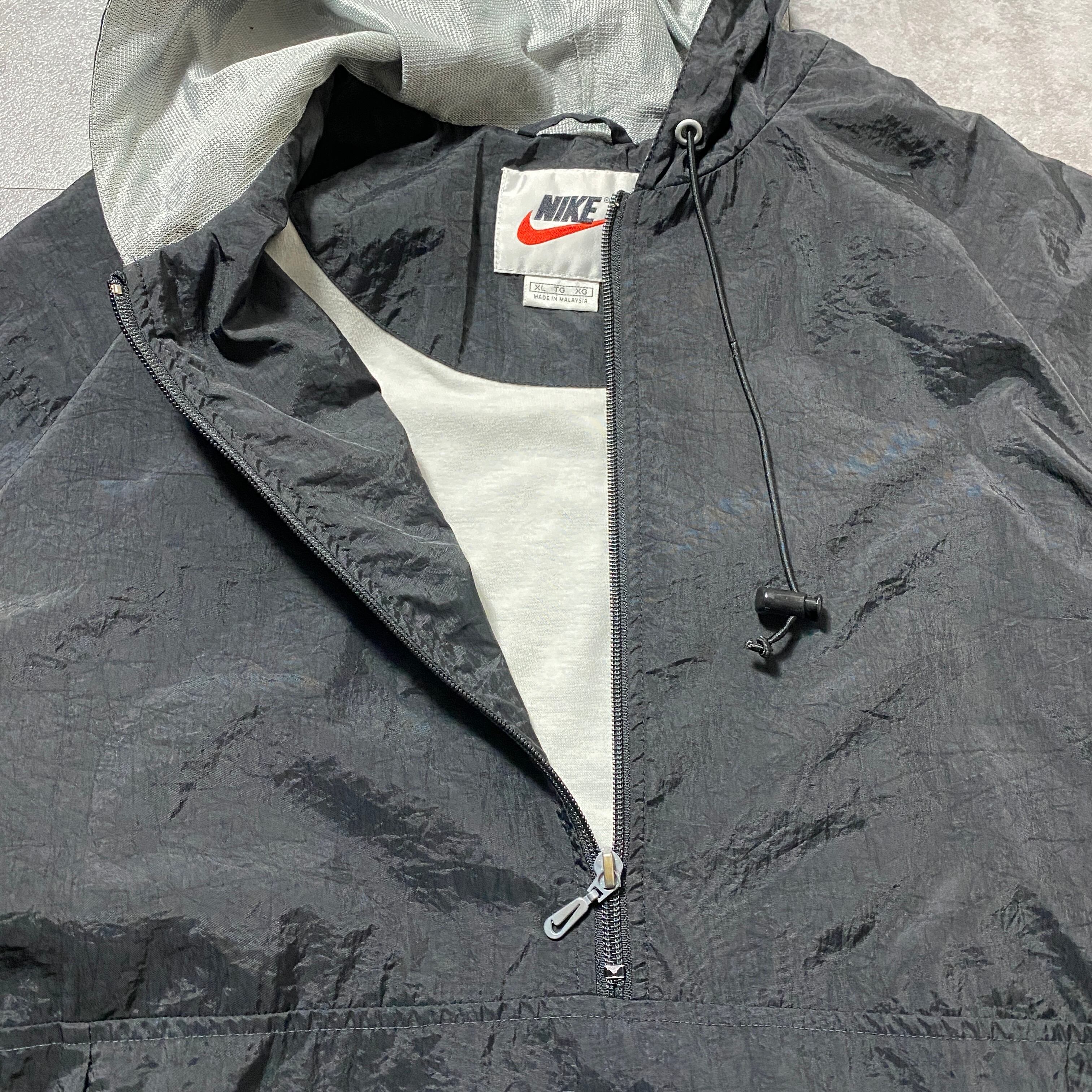 【Size.XL】90's NIKE ナイキ スウォッシュ 刺繍ロゴ ハーフジップ ナイロン アノラックパーカー