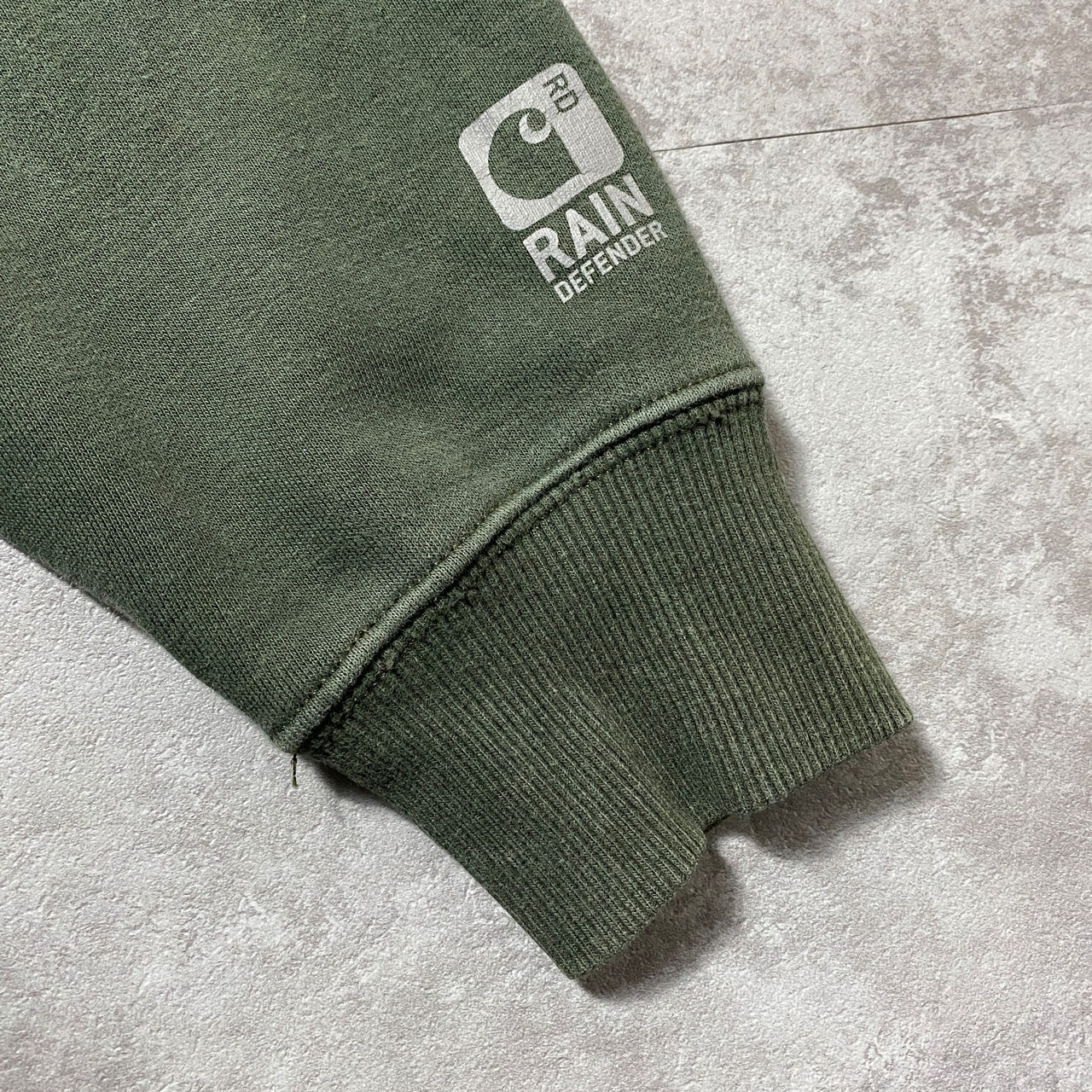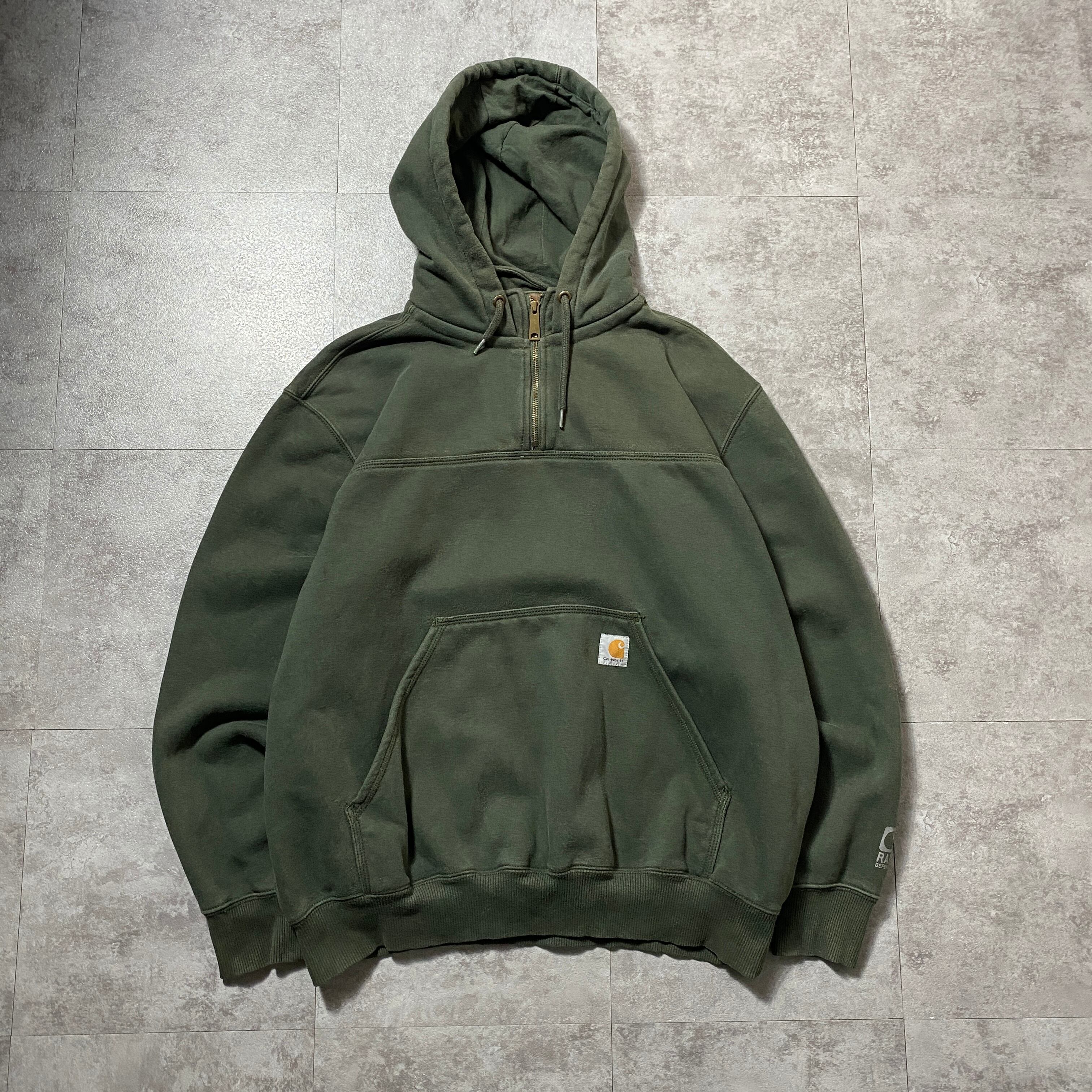 【Size.XL】carhartt カーハート ラベルロゴ ハーフジップ ヘビーオンス グリーン スウェット パーカー