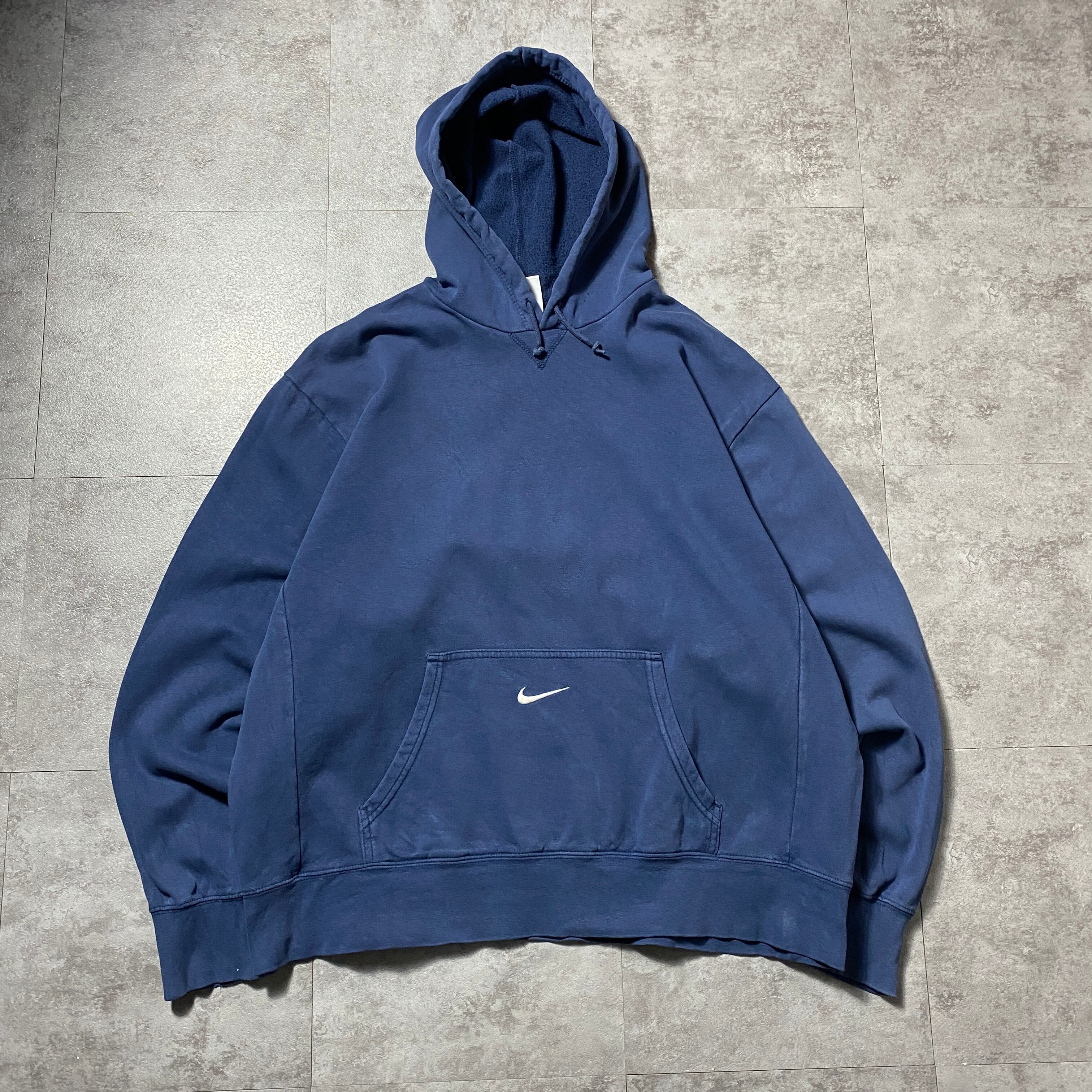 【Size.XL】00's NIKE ナイキ センタースウォッシュ 刺繍ロゴ ネイビー スウェット パーカー